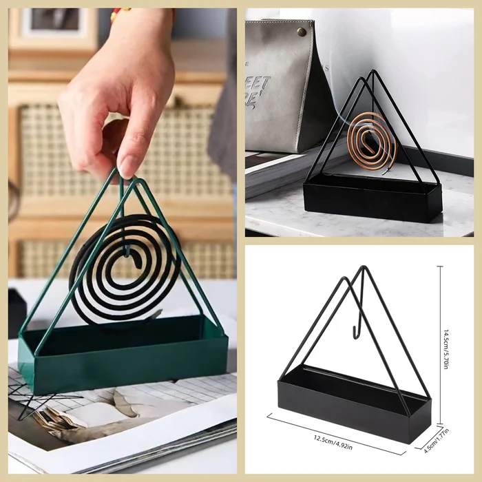 SLM Mosquito Coil Holder Triangular Shaped With Tray Metal Mosquito Repellent Incenses Rack