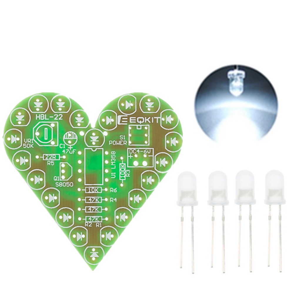 SM DIY Kit Heart Shape Breathing Lamp Kit Breathing LED Suite Red White Blue Green Electronic Production for Learning laboratory