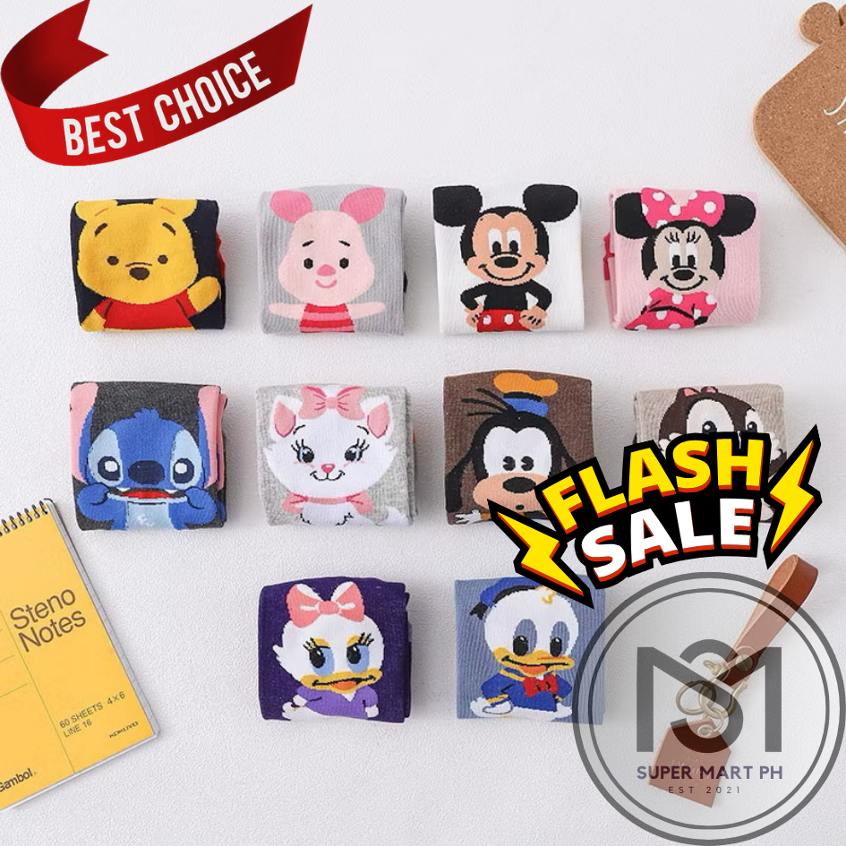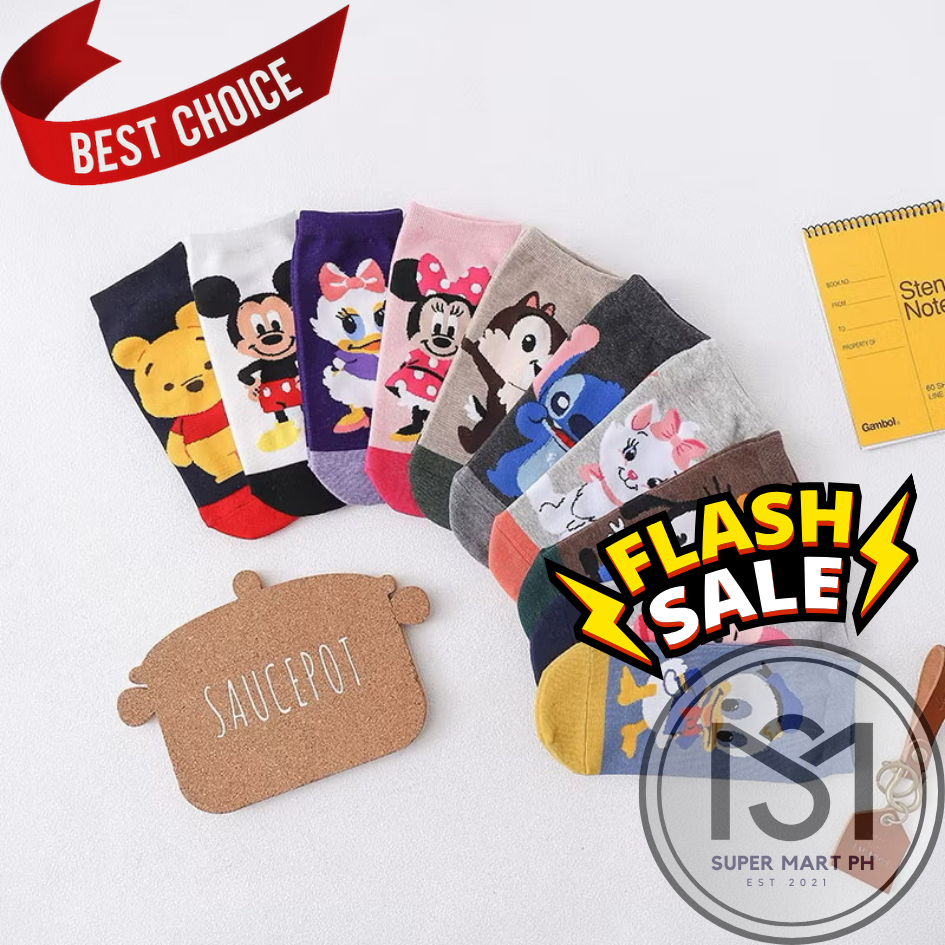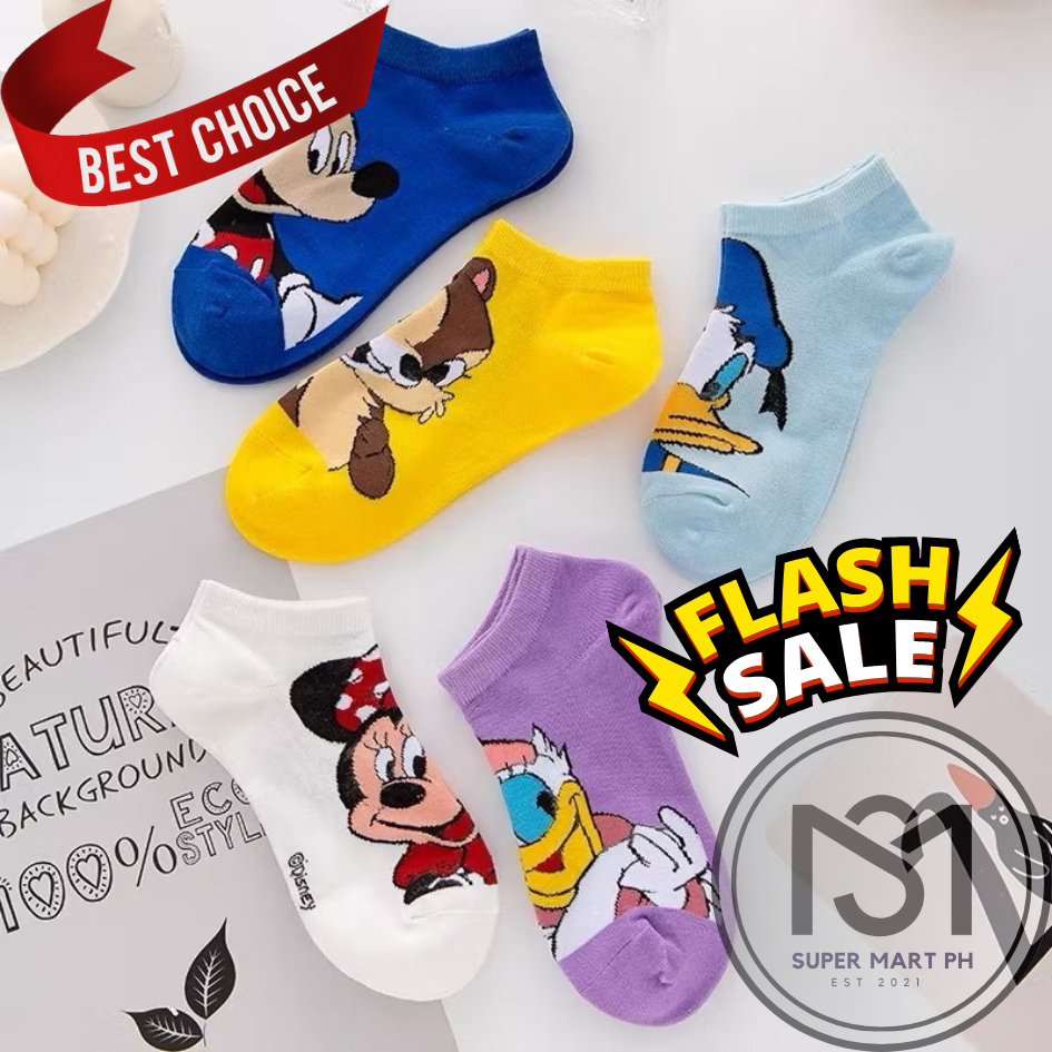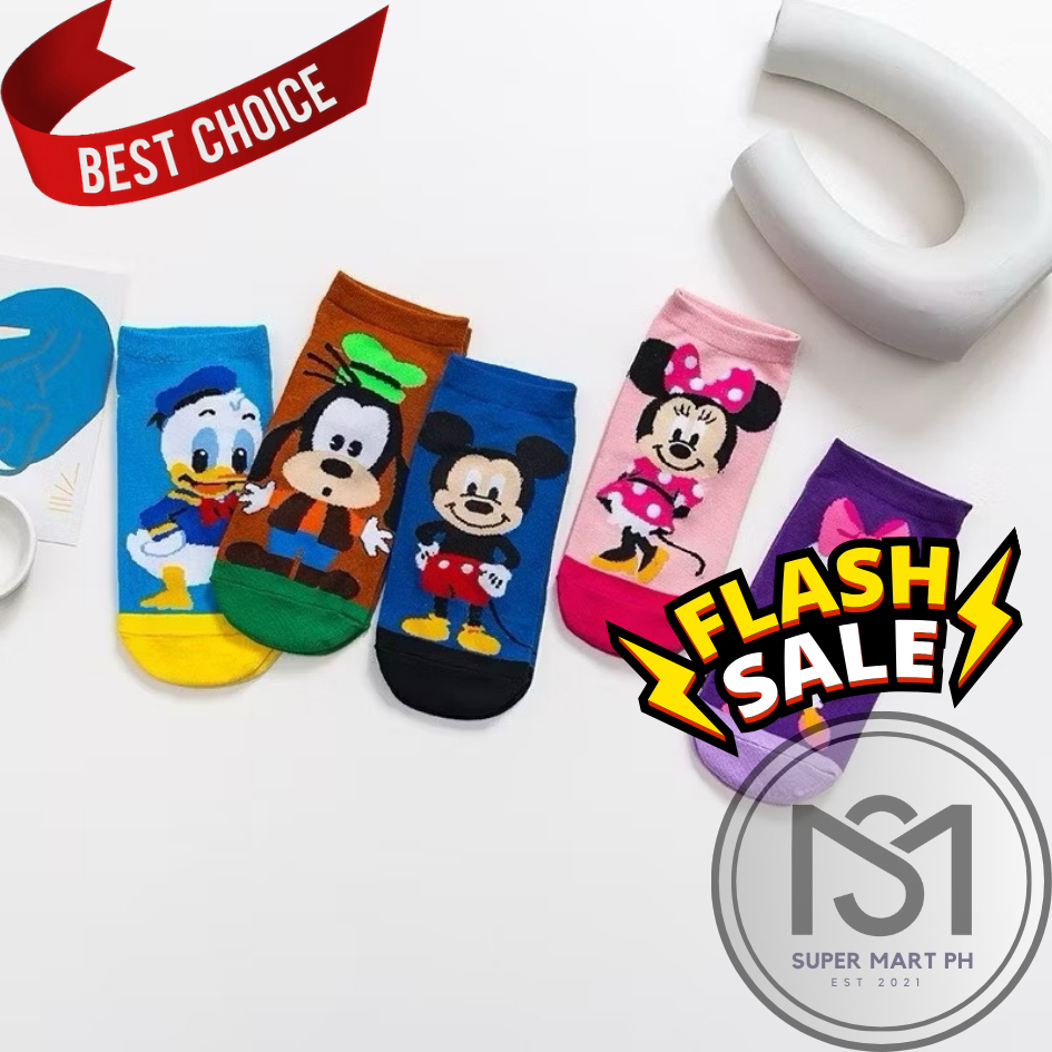 SM High Quality Disney Inspired Iconic Cartoon Pure 100% Cotton Ankle Socks for Men Women Kids