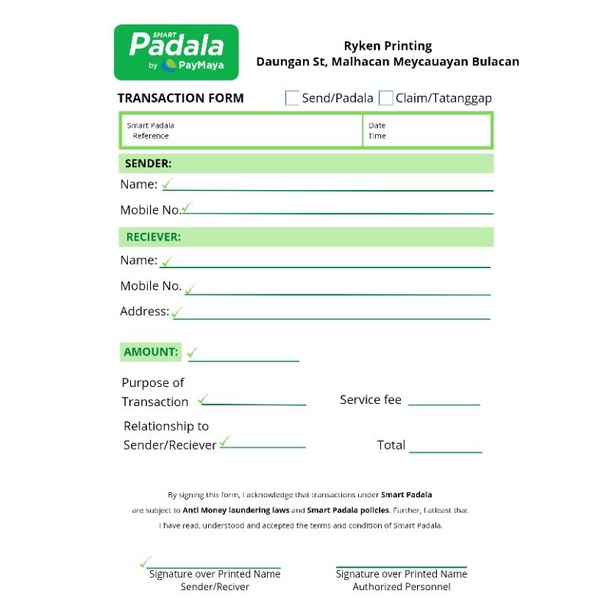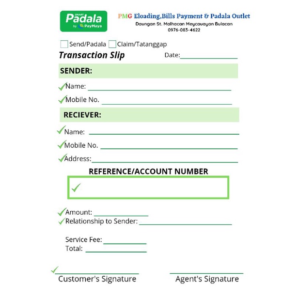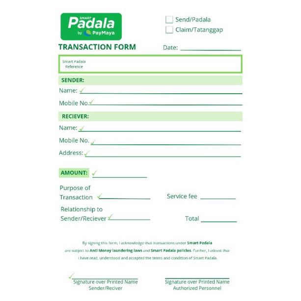 SMART PADALA TRANSACTION SLIP/FORM/RECIEPT