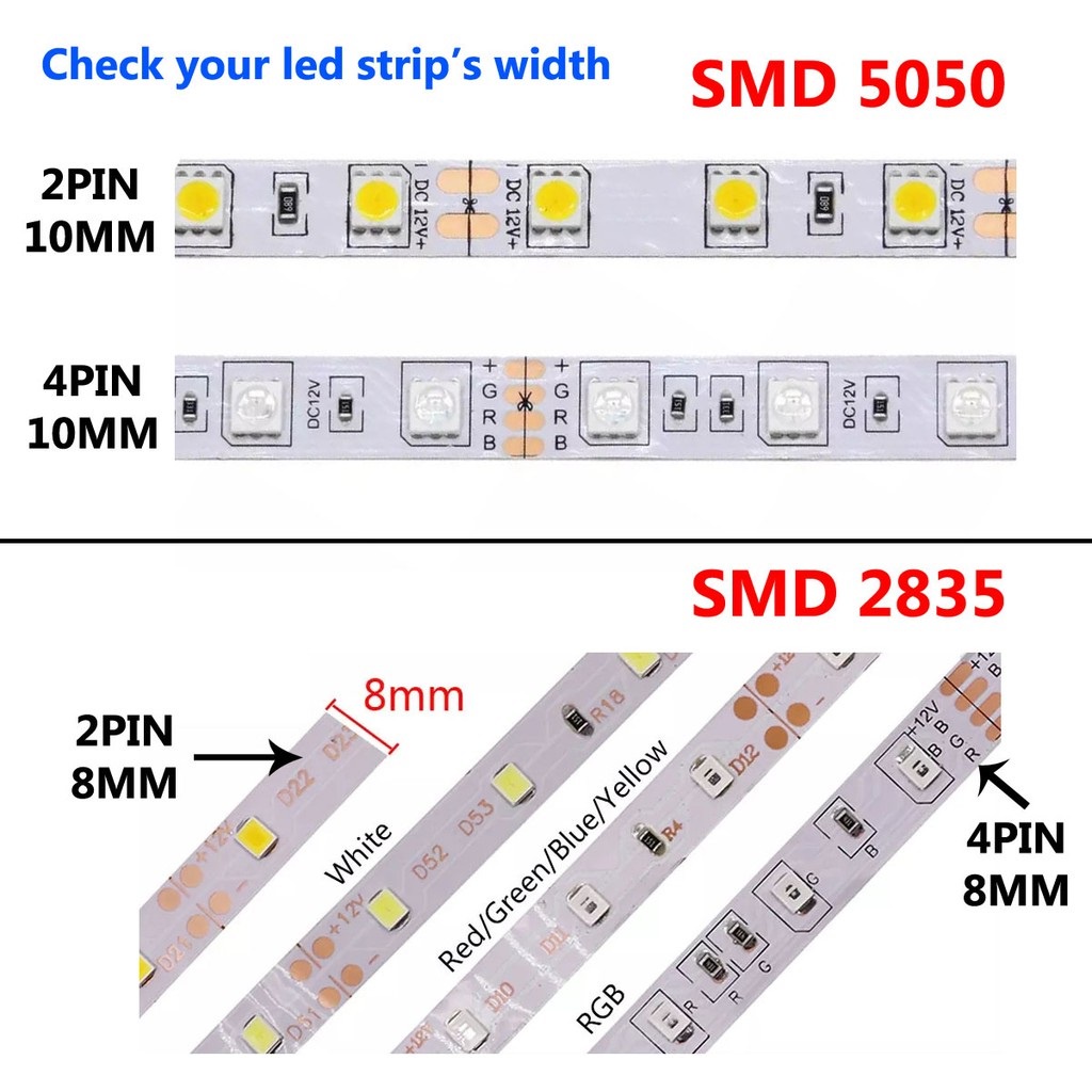 SMD 2835 / SMD 5050 / COB LED Strip Light Clip Connector Solderless 2 Pin 4 Pin RGB Single Colour