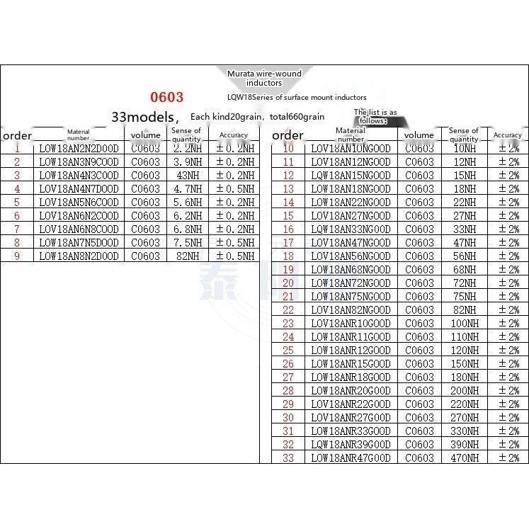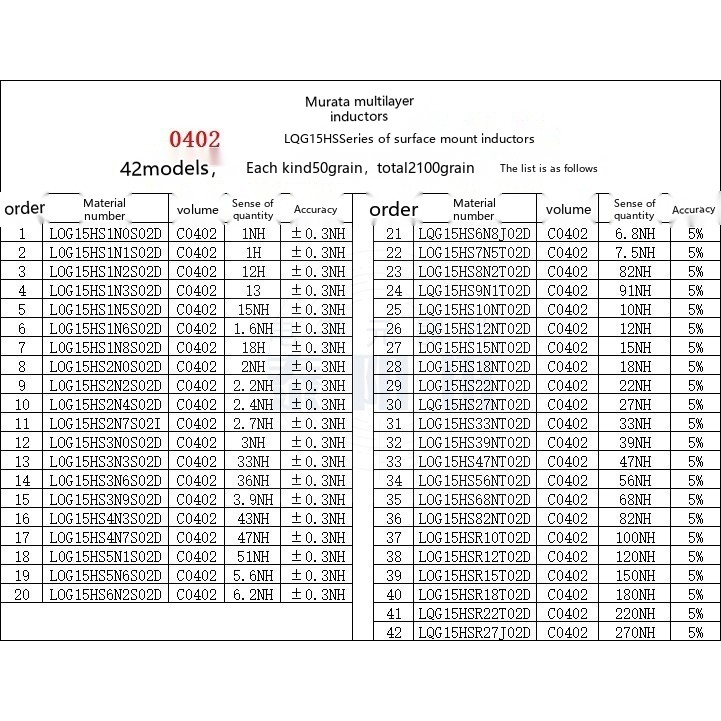 SMD Resistor Capacitor Inductor Sample Book 02010402060308051206 Yageo Murata Sunlord Component Book