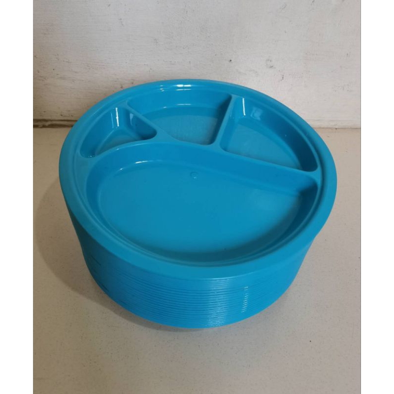 SMILE 12PCS. Four Compartment Reusable Divided Round Plastic Plate Plastic plate #2201