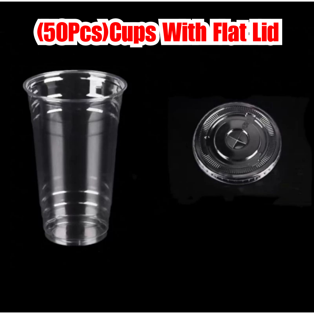 SMILE 50PCS Milk Tea Cups Plastic Y Cup With Lids Set for Milk Tea Plastic Cup (12oz,16oz,22oz)
