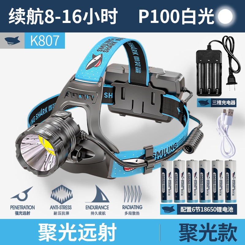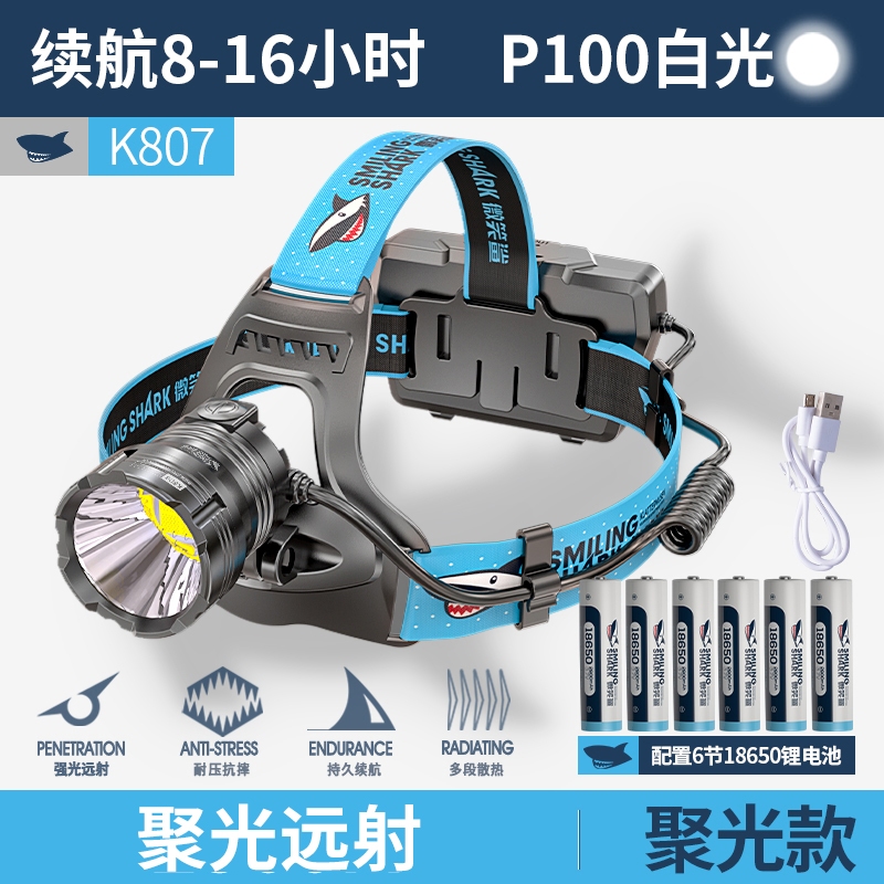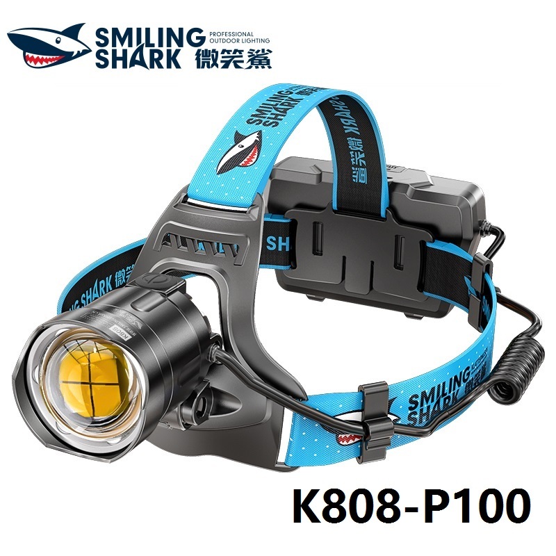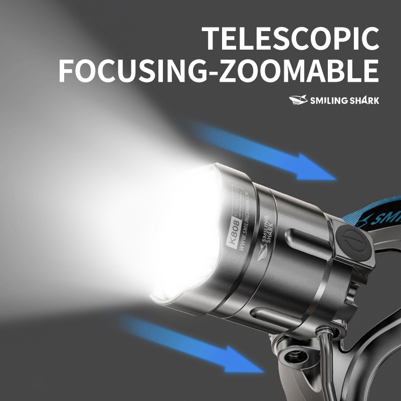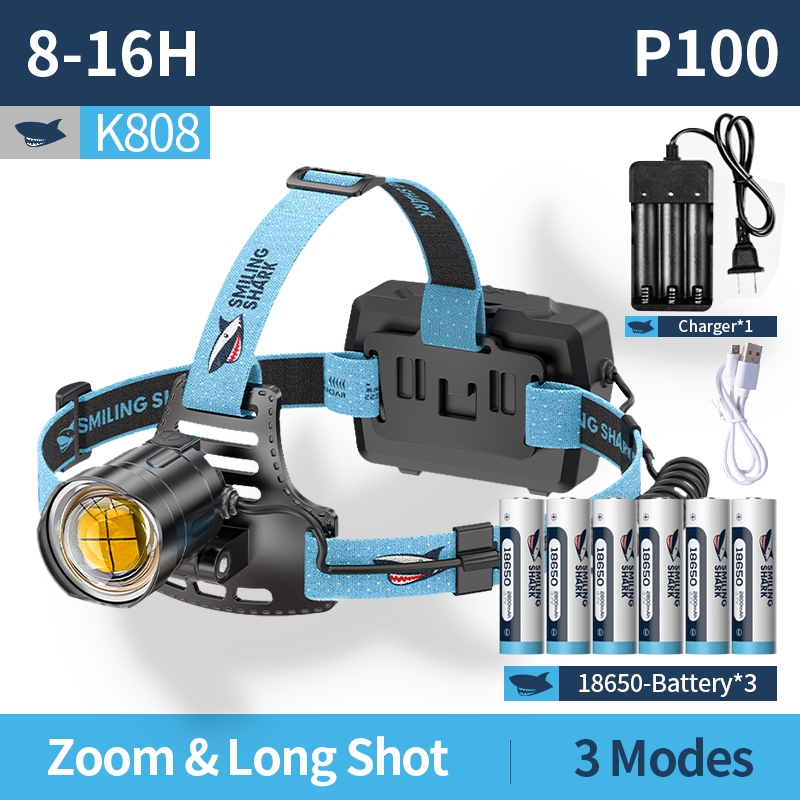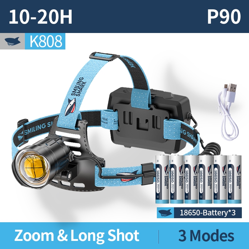 SMILING SHARK Headlight Led P100 5000LM 50W Super Bright Headlamp Rechargeable Water proof Head Light Long Shot 1000m Outdoor Camping Hiking K808