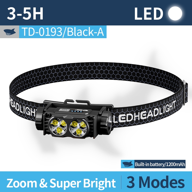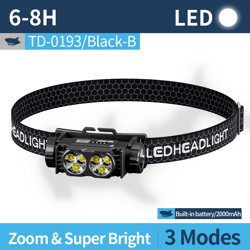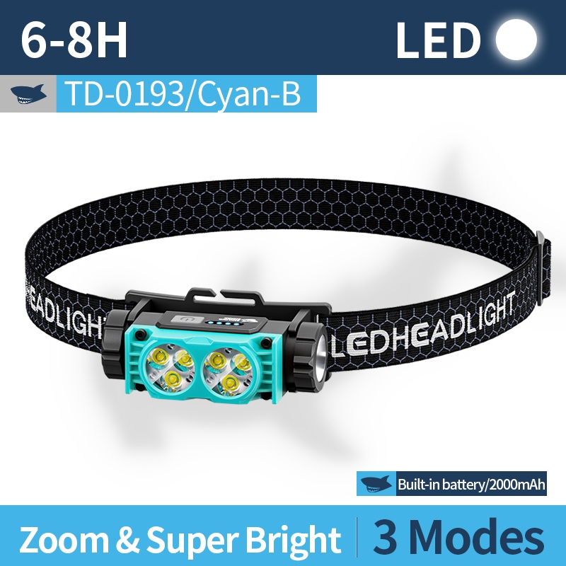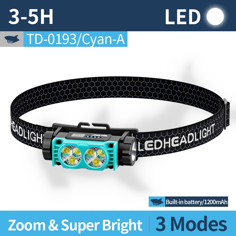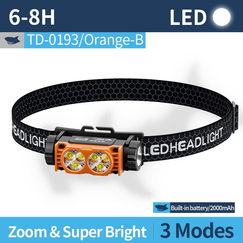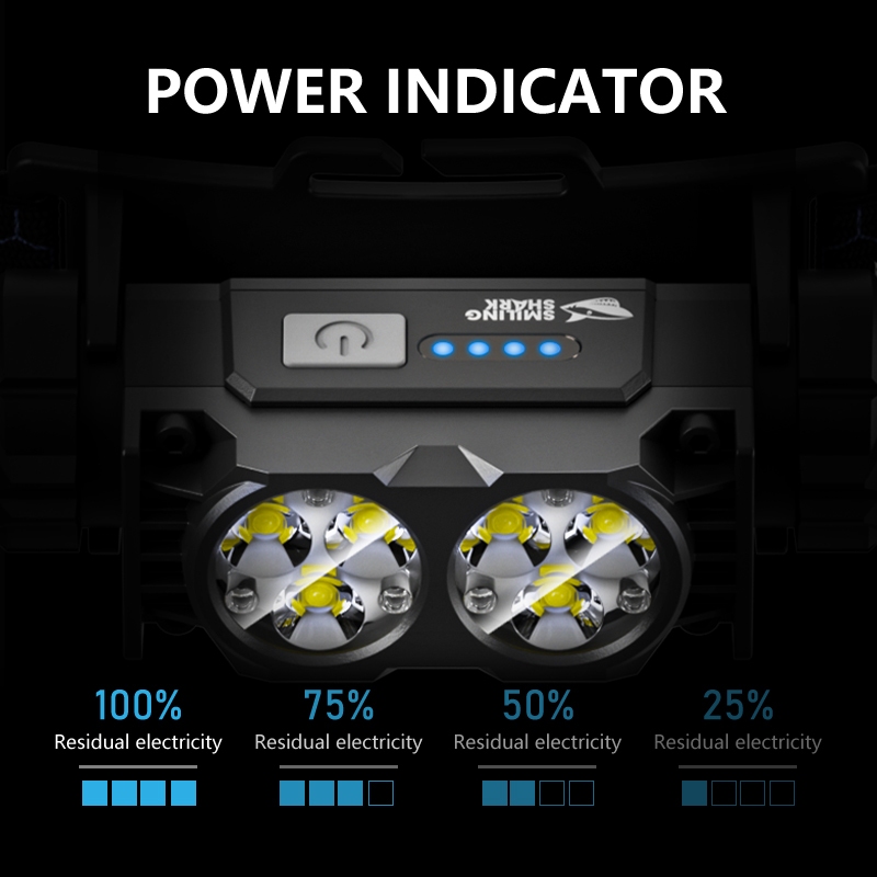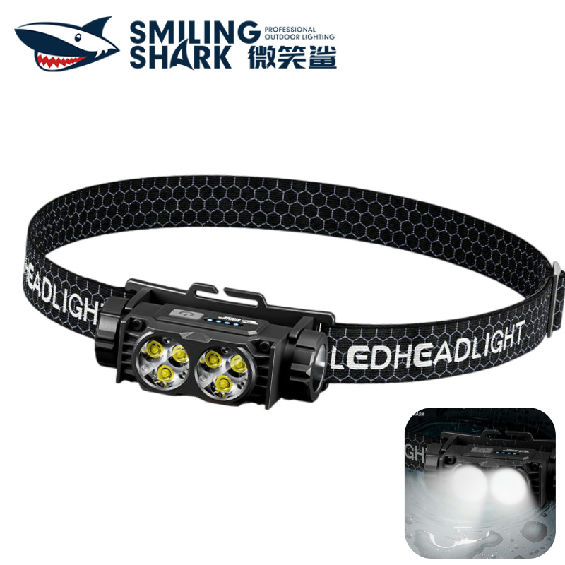 SMILING SHARK Rechargeable Headlight Waterproof Led*6 Super Bright Headlamp Outdoor Camping TD0193