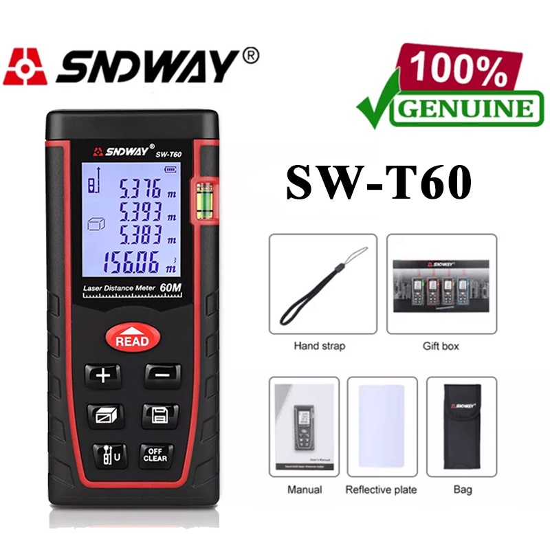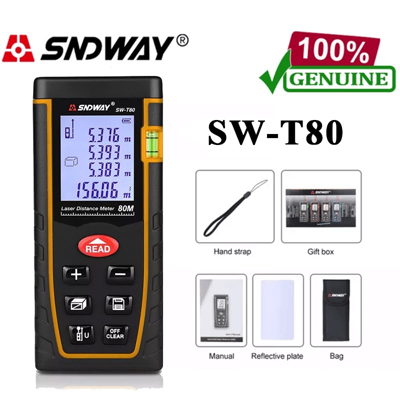 SNDWAY SW-T100 Digital Laser Distance Meter 100M Laser Range Finder Tape Measure Distance Tool 40M 60M 80M 100M