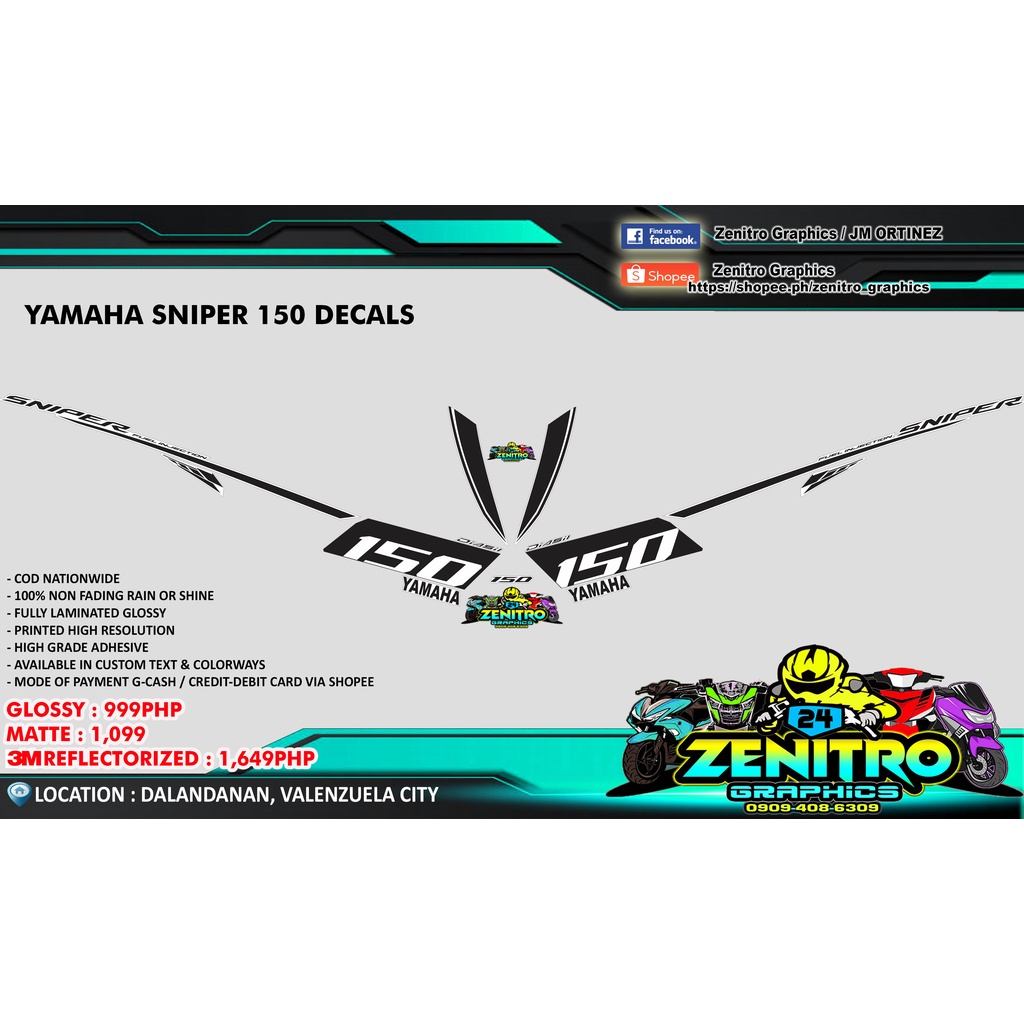 SNIPER 150 STOCK DECALS IN TRANSPARENT BACKGROUND