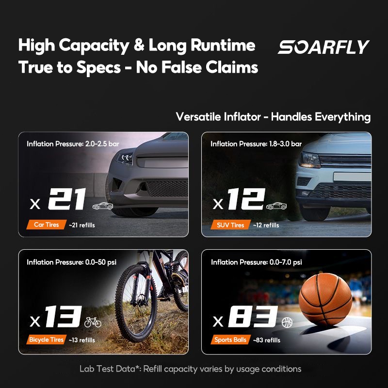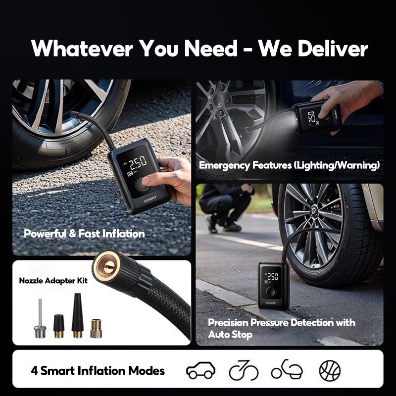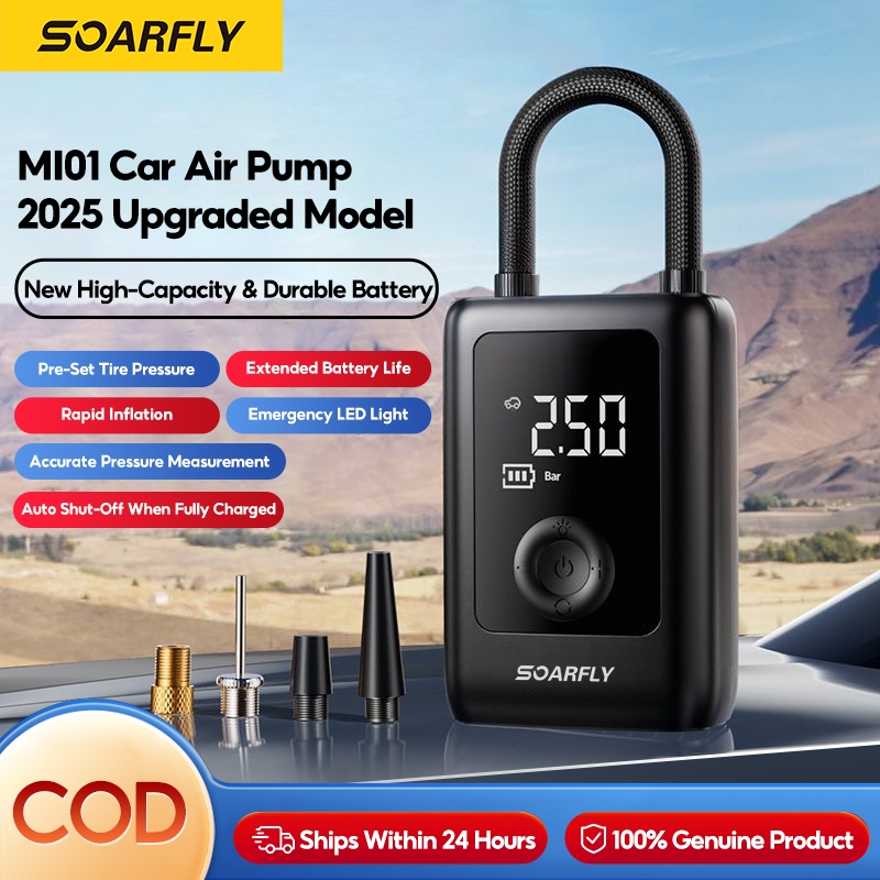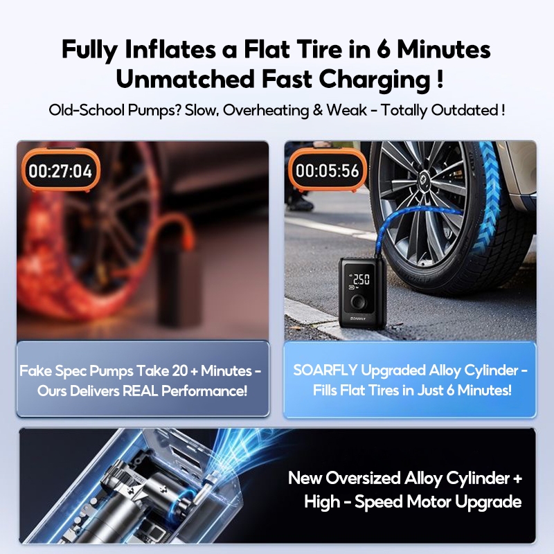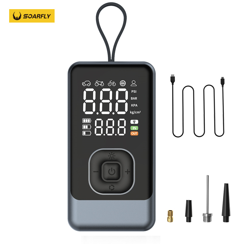 SOARFLY Car Air Pump 150PSI air compressor portable electric air pump With led light & powerbank