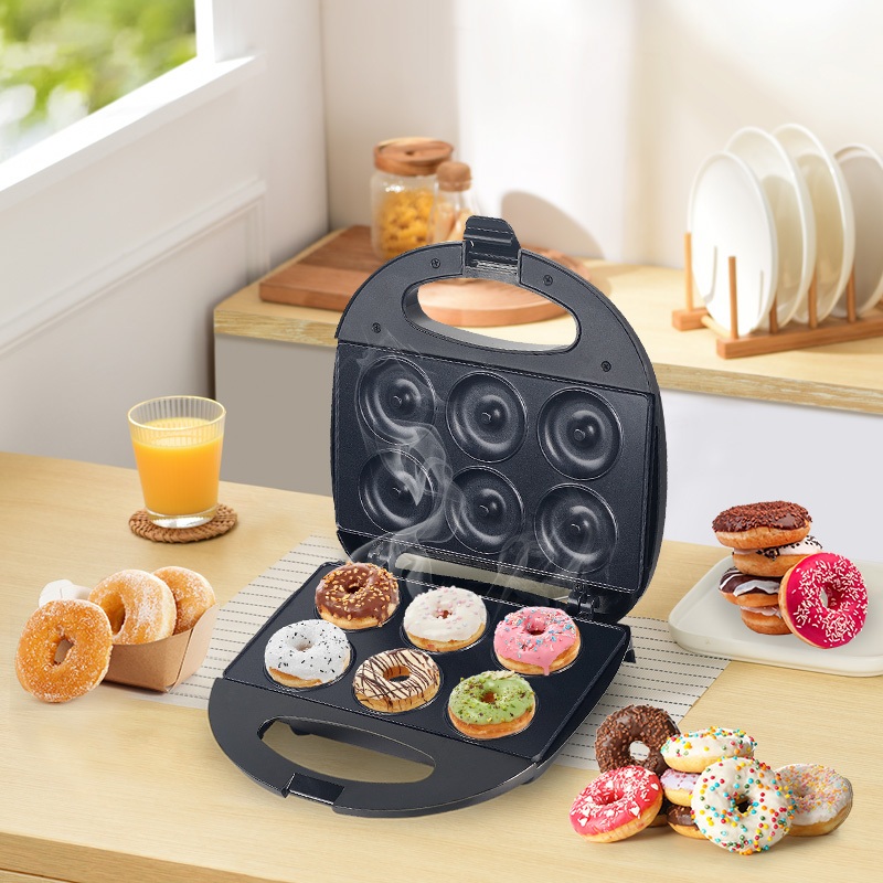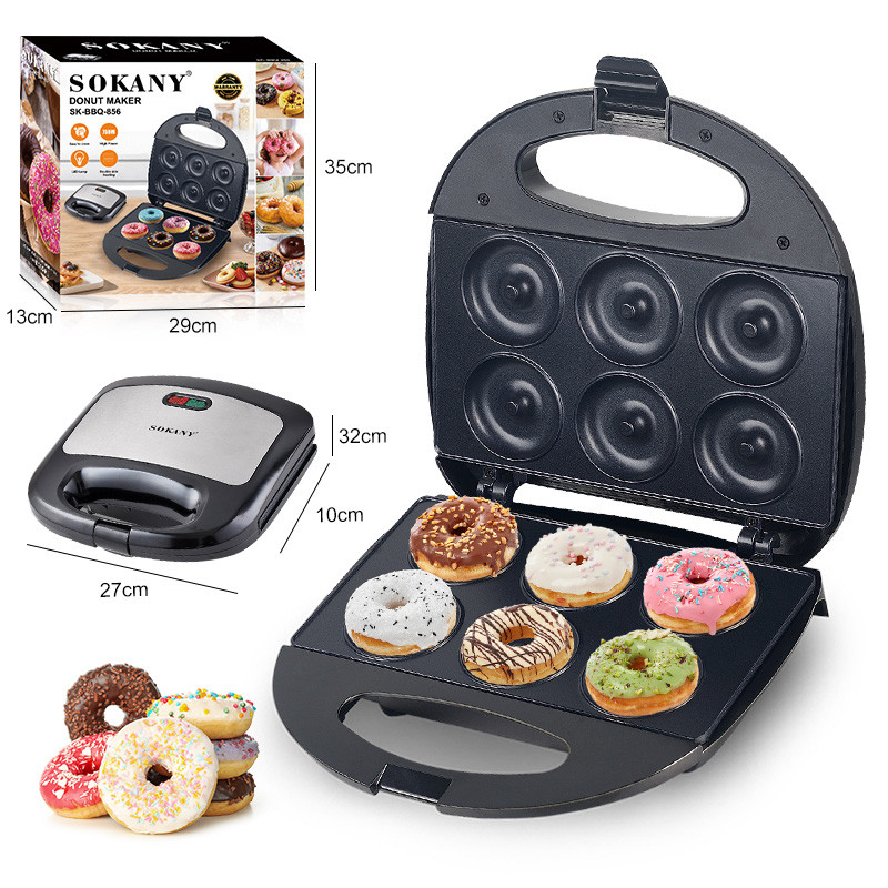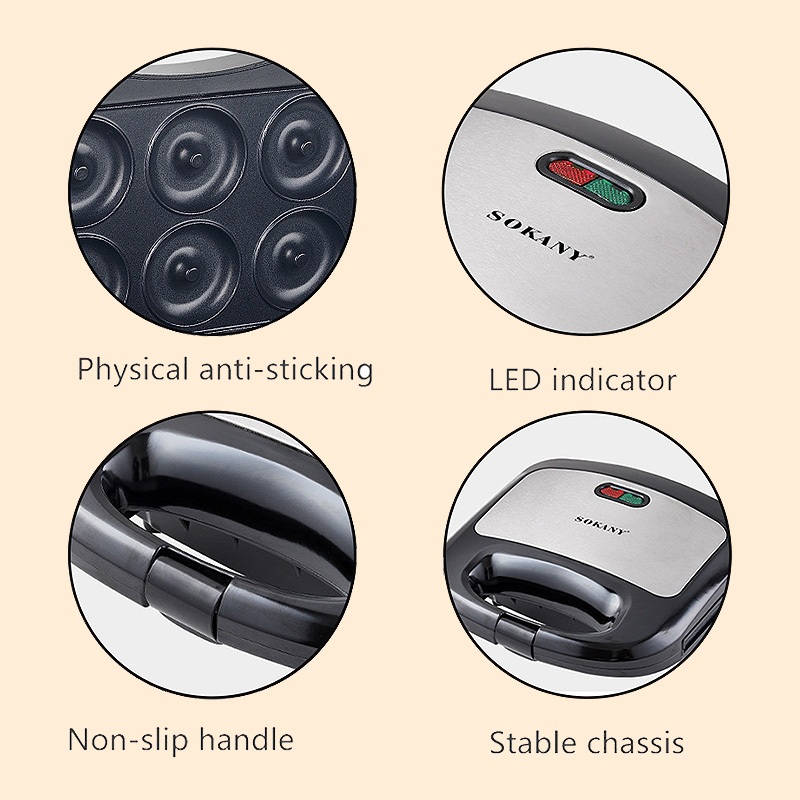 SOKANY 6 Hole Mini Donut Maker Machine Mini Doughnut Waffle Maker Breakfast Waffle Machine Electric Donut Maker Tough Mama 750W Breakfast Cake Maker donut mix Waffle Maker pan