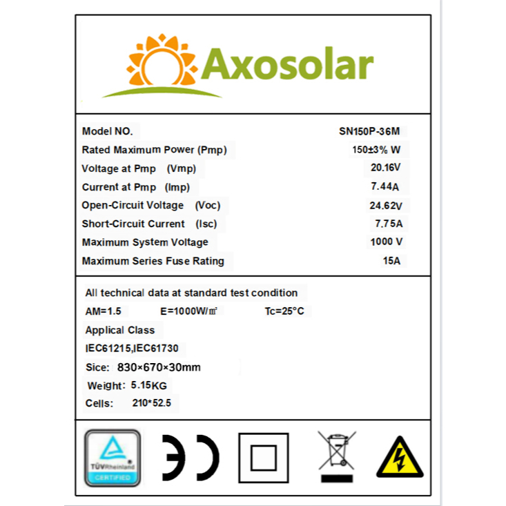 SOLAR PANEL 150watts MONOCRYSTALLINE