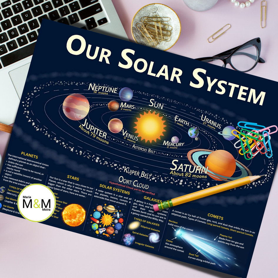LAMINATED PLANETS / SOLAR SYSTEM CHARTS | A4 SIZE | EDUCATIONAL PLANETS CHARTS FOR KIDS
