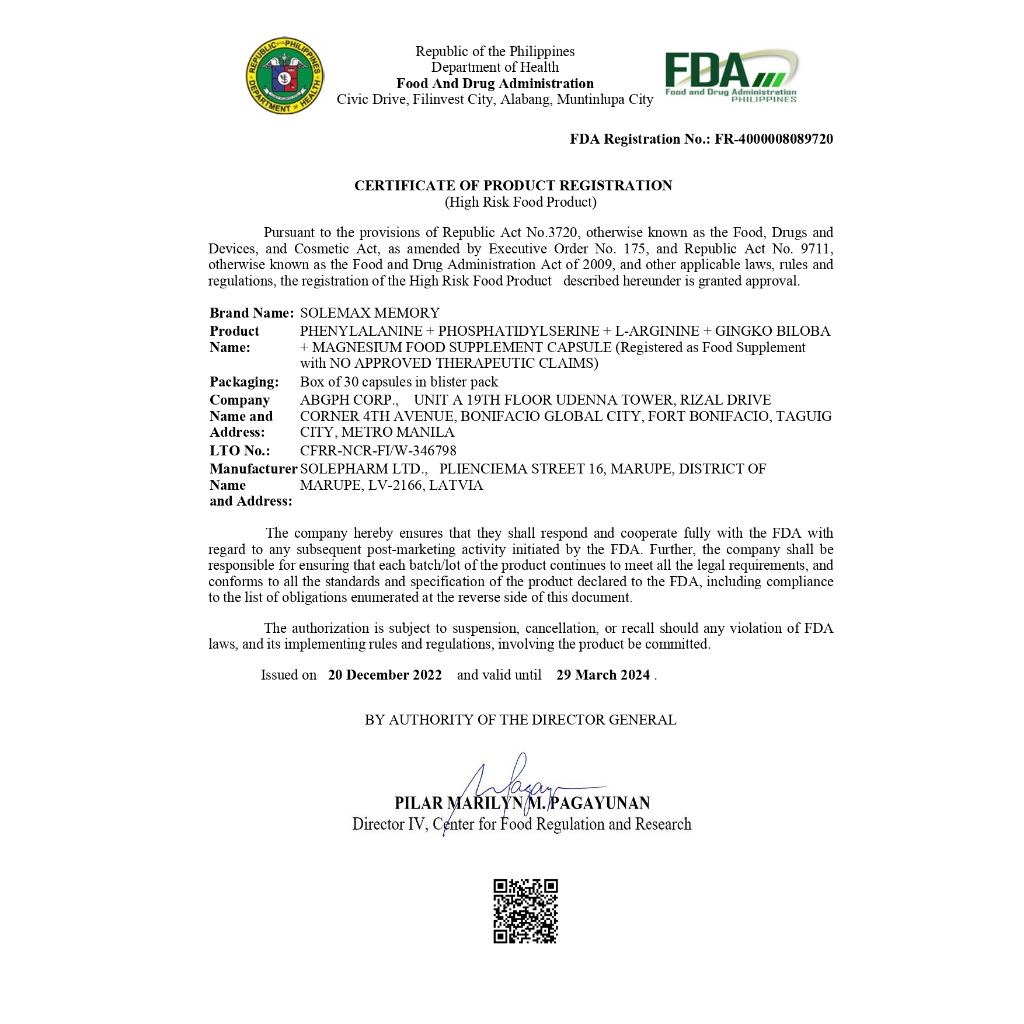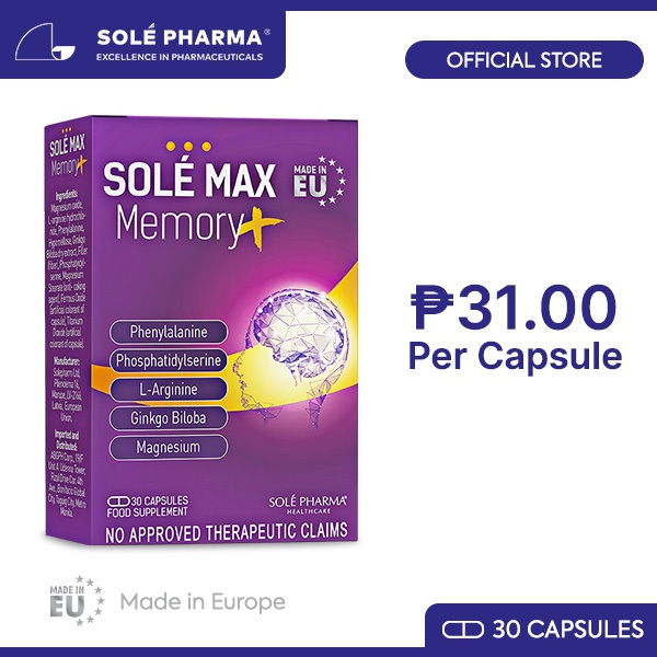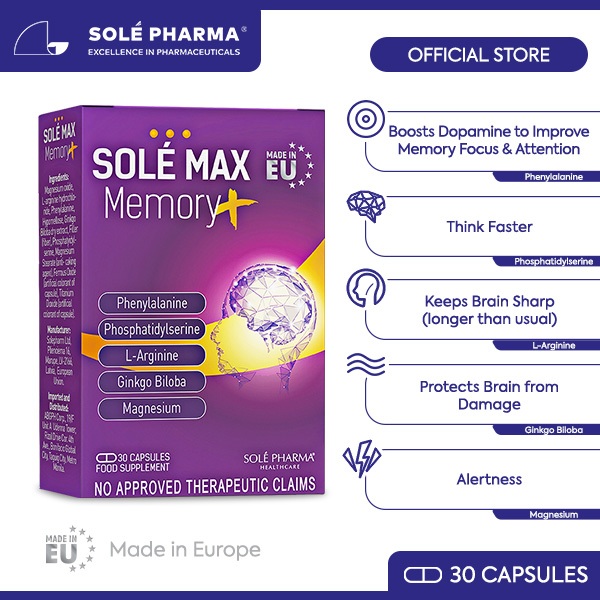 Sole Max Memory Plus Premium Food Supplement by 30 capsules/Box