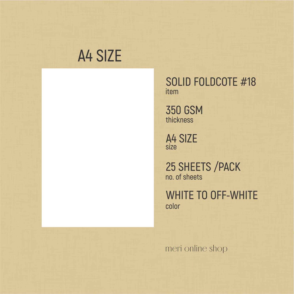 SOLID FOLDCOTE #18 350 gsm A4 size 25 sheets per pack