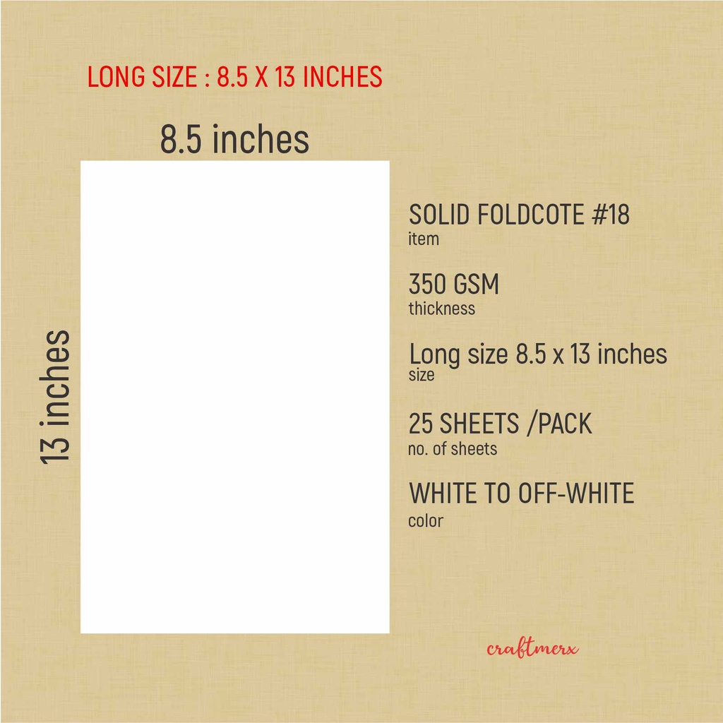 SOLID FOLDCOTE #18 350 gsm Long size, legal size, 25 sheets per pack