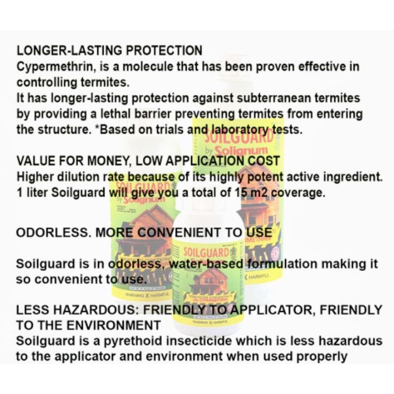 SOLIGNUM ODORLESS SOIL TERMITICIDE SOILGUARD ANTI-TERMINITES(ANAY) 250ML, 500ML, 1 LITER JARDINE