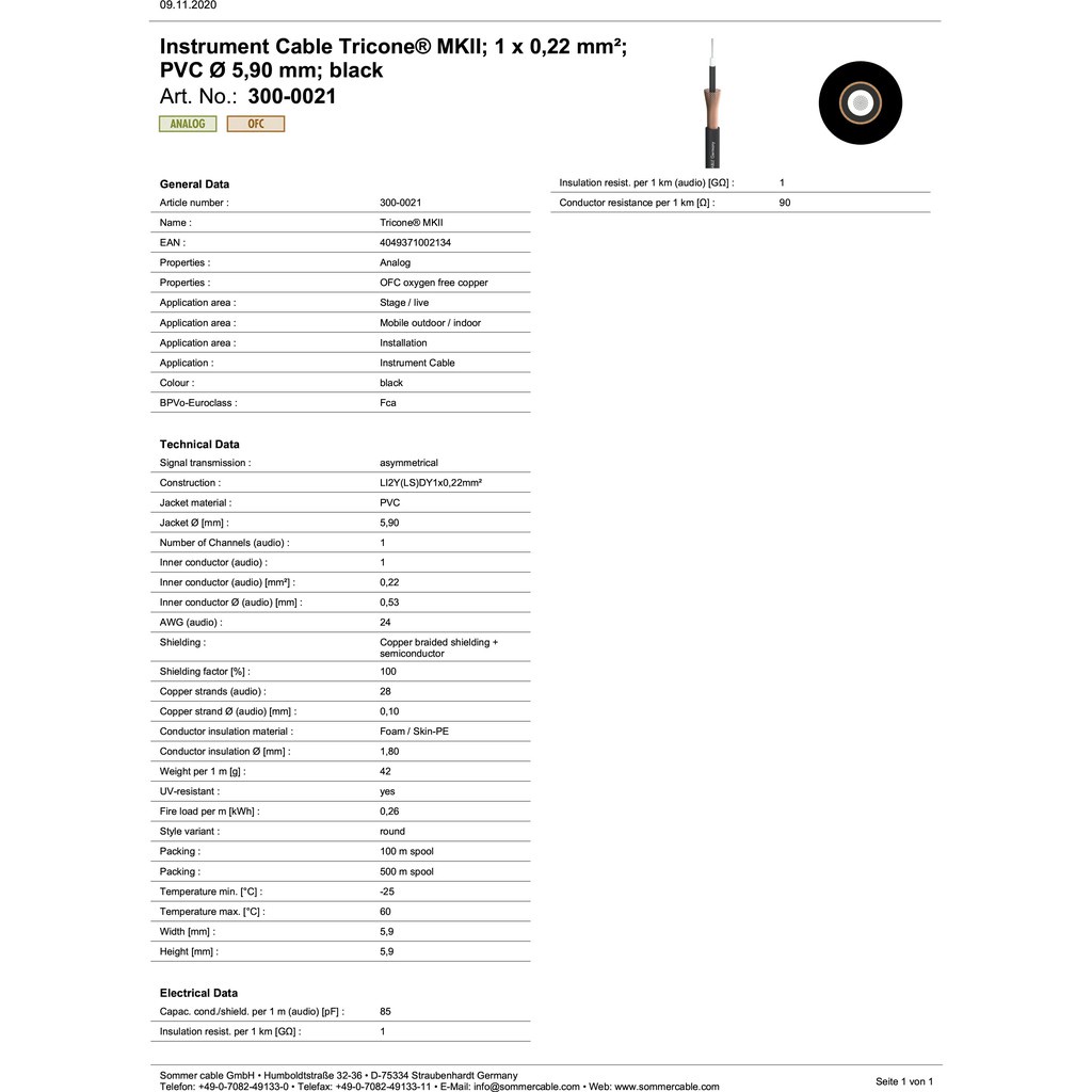 SOMMER TRICONE MKII Signal Cable 1x0.22mm2 24AWG OFC Genuine 1 For Musical Instrument