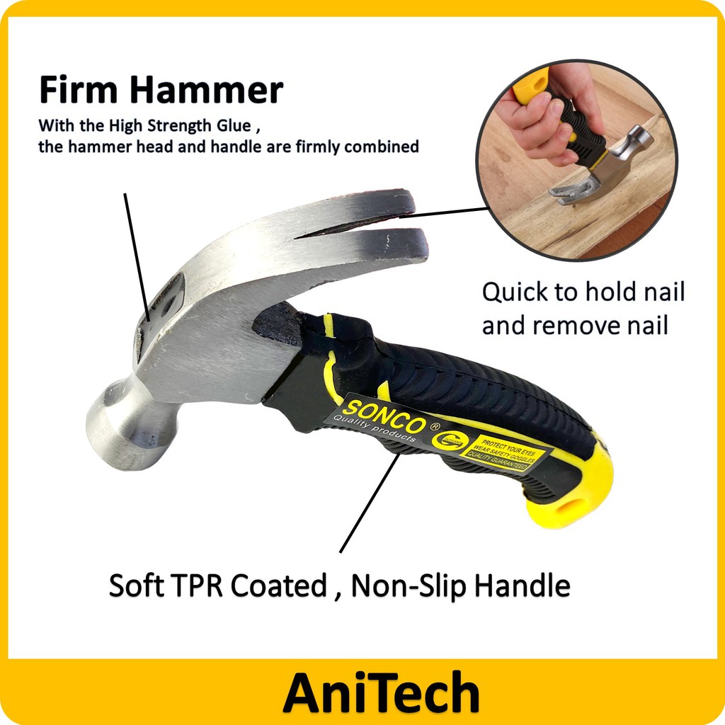 SONCO Mini Claw Stuby Small Hammer Fiberglass Handle / Pemukul Kecil / Mini Hammer Kecil Ketuk Pakul Tukul Mini