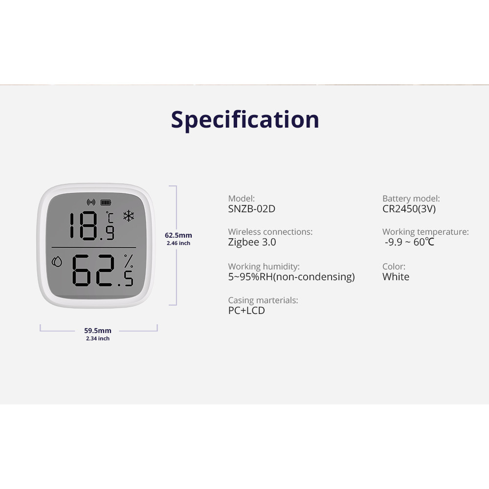 SONOFF SNZB-02D Zigbee LCD Smart Temperature Humidity Sensor Works with ZBBridge Support Real-time Data Check via eWeLink APP IFTTT