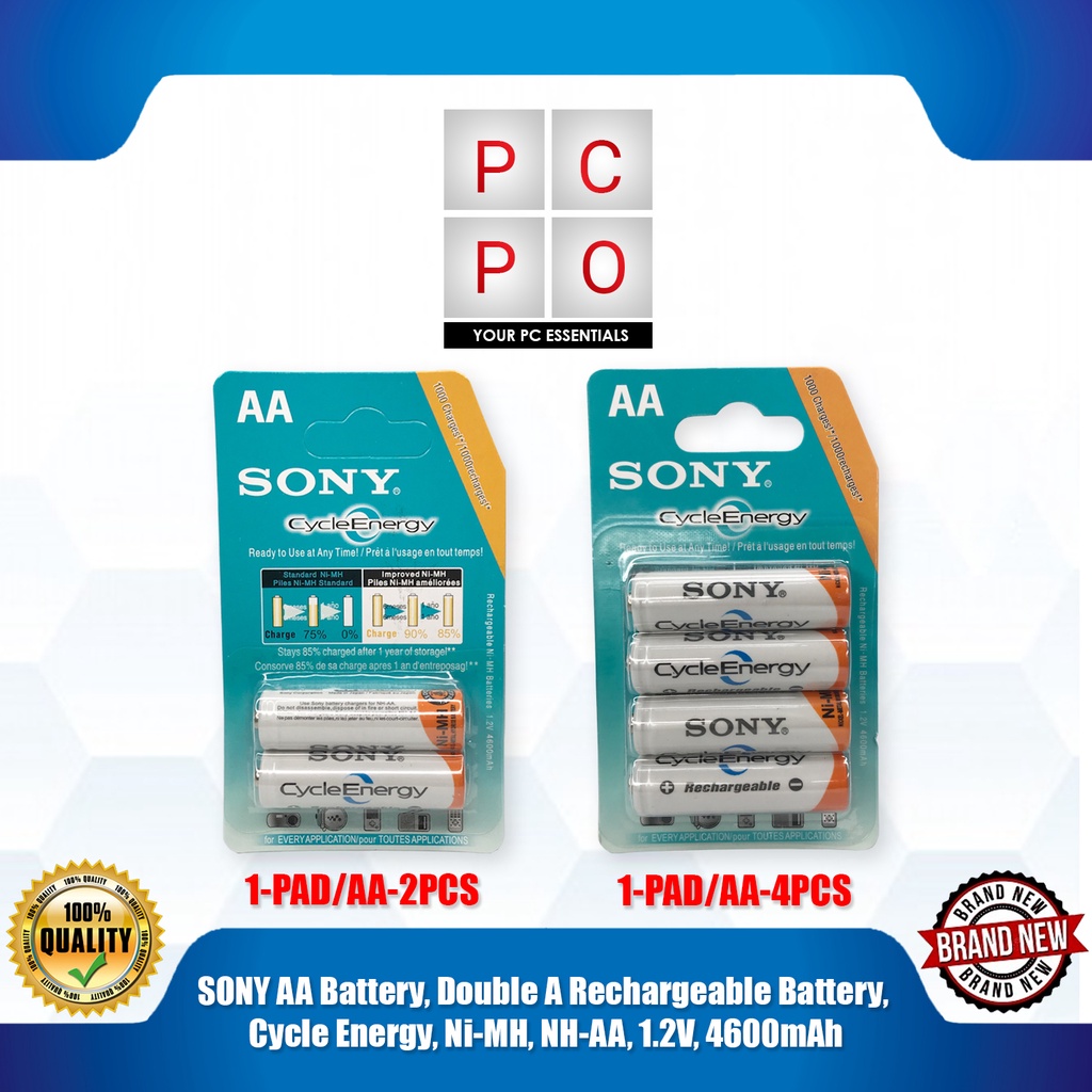 SONY AA Battery, Double A Rechargeable Battery, Cycle Energy, Ni-MH, NH-AA, 1.2V, 4600mAh