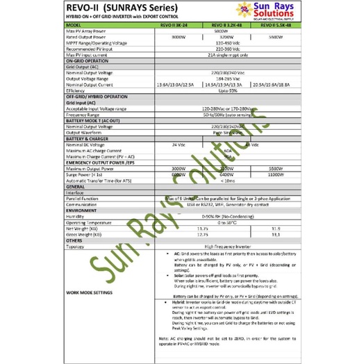 SOROTEC: REVO II- 5.5kW 48V Hybrid ON+OFF Grid inverter with CT and Wi-Fi