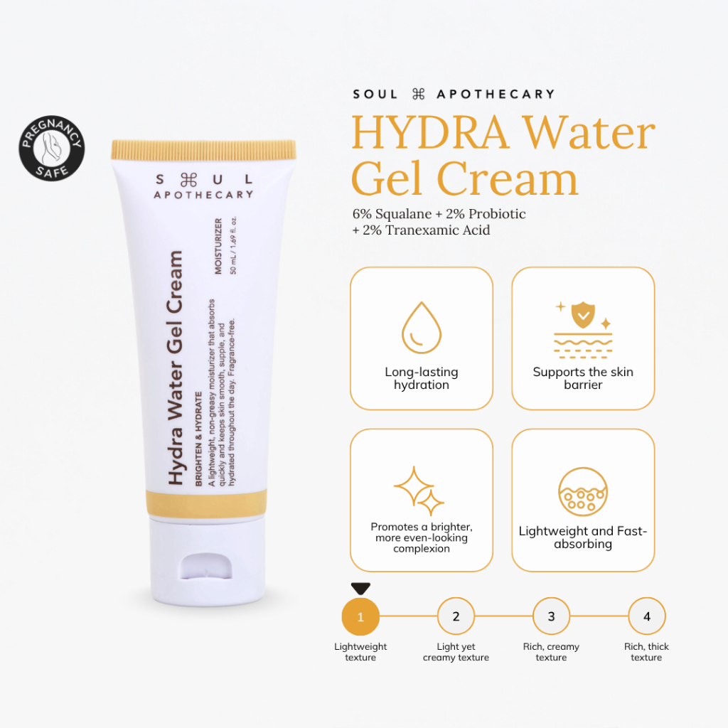 SOUL APOTHECARY: HYDRA Water Gel Cream Moisturizer (Squalane, Probiotic, Tranexamic Acid)