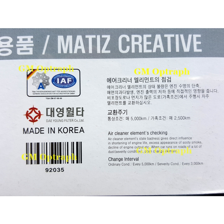 SPARK 2nd Gen 2010~2015 Engine oil Filter / Engine Air Filter / Cabin filter ( 100% Made In Korea )