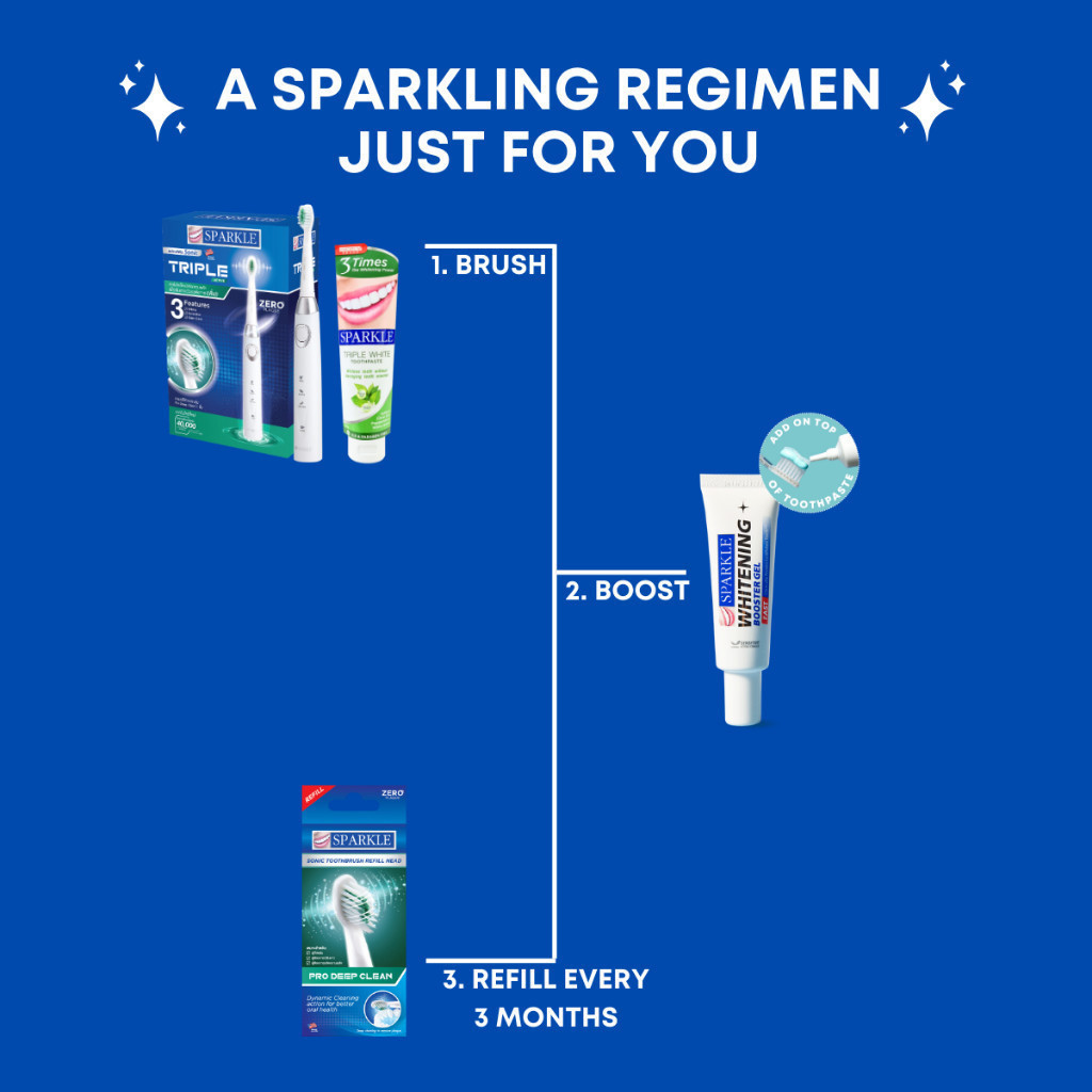 SPARKLE Triple Active Trio (Triple Active Toothbrush, Triple White Toothpaste 100g, Booster Gel)
