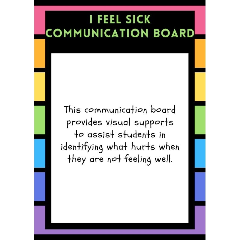 SPEECH THERAPY I FEEL SICK BOARD FOR NON VERBAL CHILDREN
