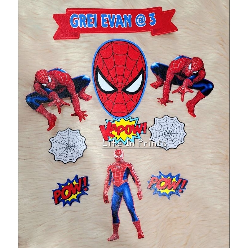 SPIDERMAN WITH WEB cake topper set / PRINTED /Personalized with NAME and AGE