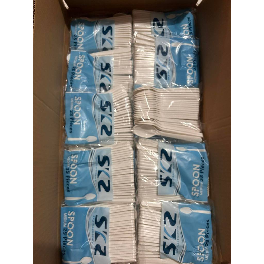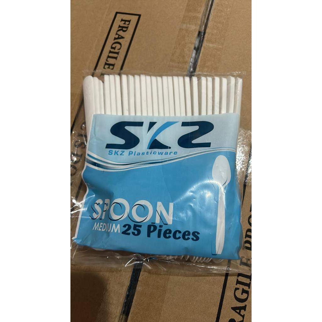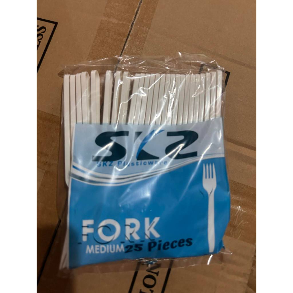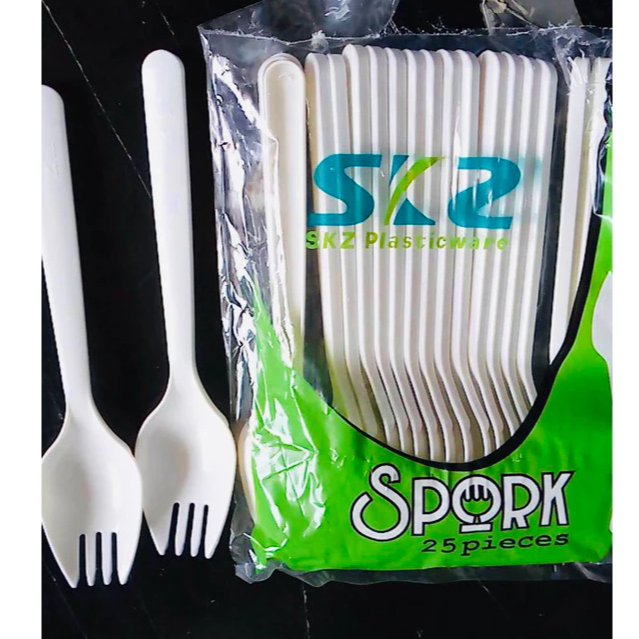 SPOON FORK AND SPORK DISPOSABLE PLASTIC SKZ WHITE 25 PCS PER PACK