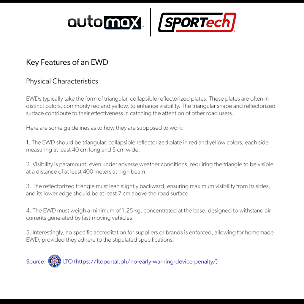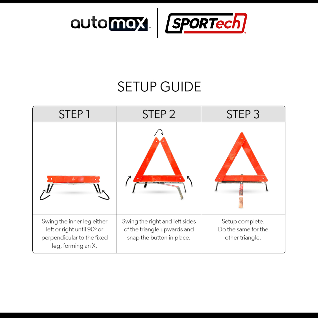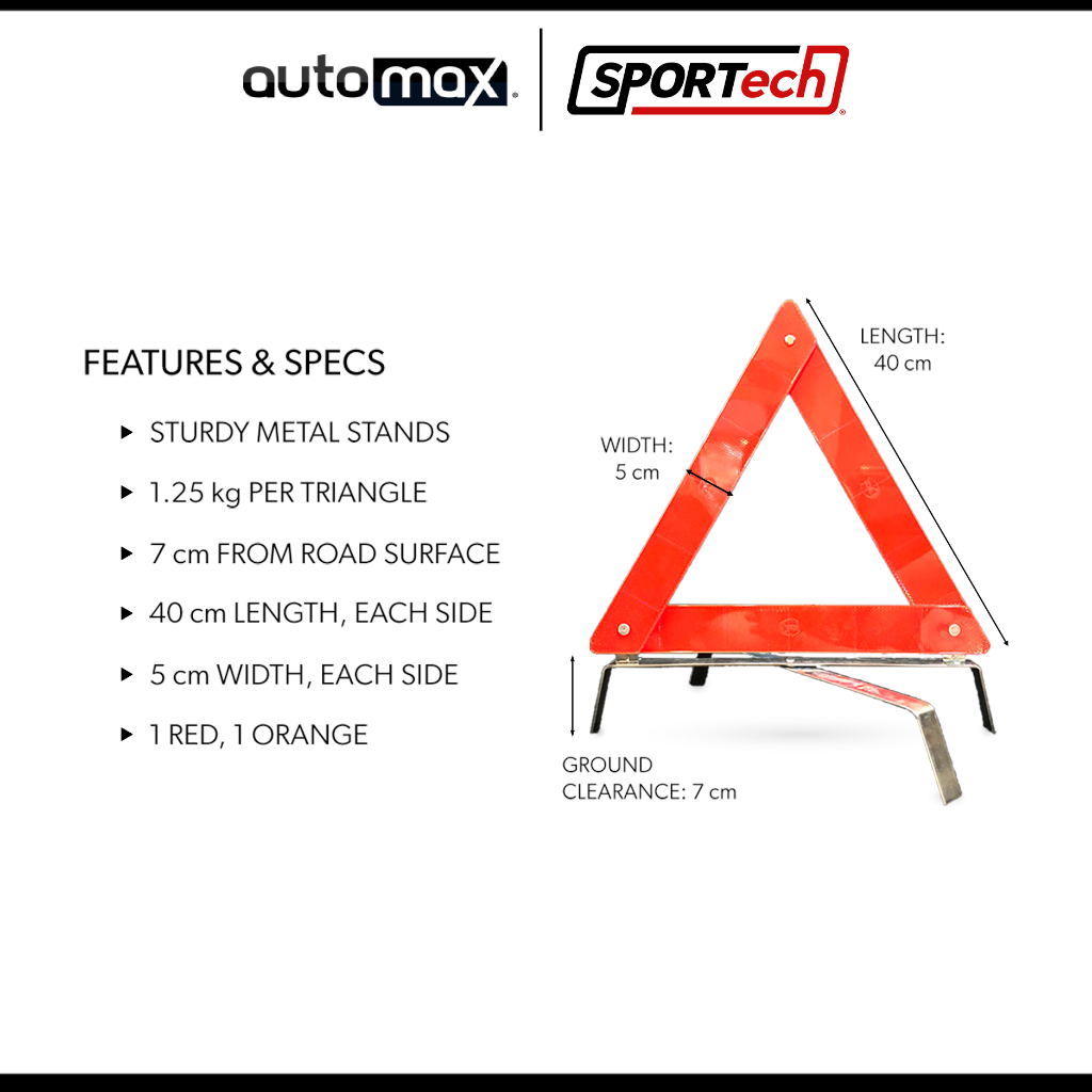 SPORTech Early Warning Device EWD Safety Triangle LTO Standard Heavy Duty for Cars, SUVs, Vans