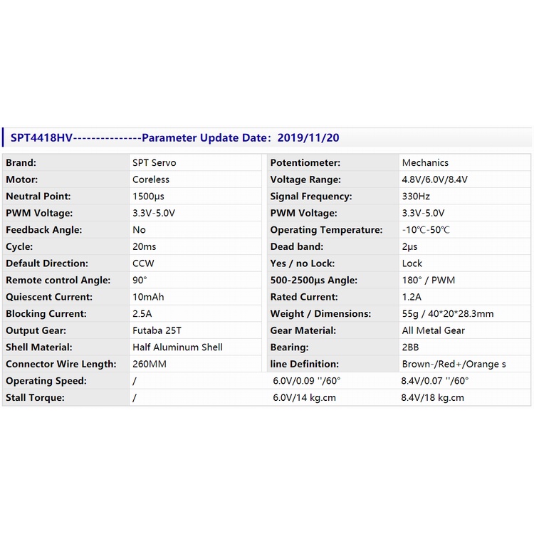 SPT Metal servo 13KG 18KG 20KG 30KG Metal Gear Hollow cup Digital Servo RC Car Drift 1:10 1:12 car Robot Arm Arduino