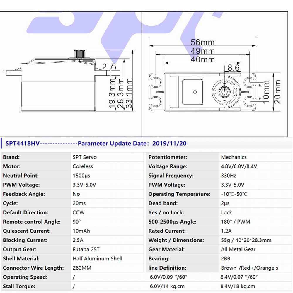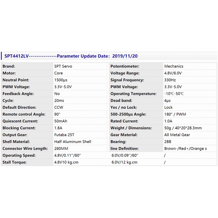 SPT Servo 4412LV 180 210 320 360 12kg 18kg Coreless Rc Servo Metal Gear Digital Servo Short Body Low Profile Servo Motor RC Car Drift 1:10 1:12 Car Robot Arm Arduino Free Shipping