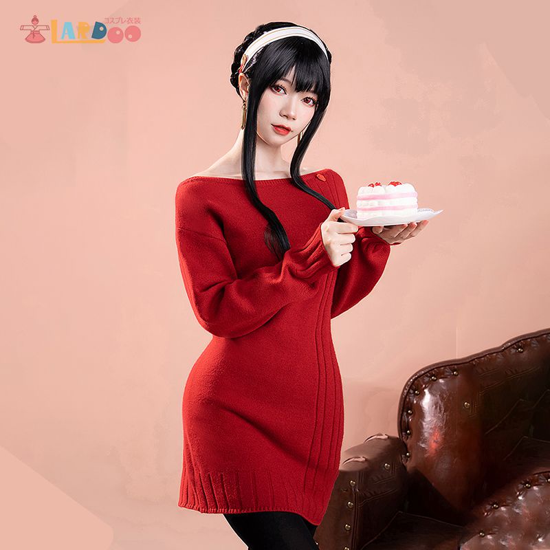 SPY X FAMILY Yor Forger Red Sweater Cosplay Costume Red Tube Knitting Dress Halloween Costume