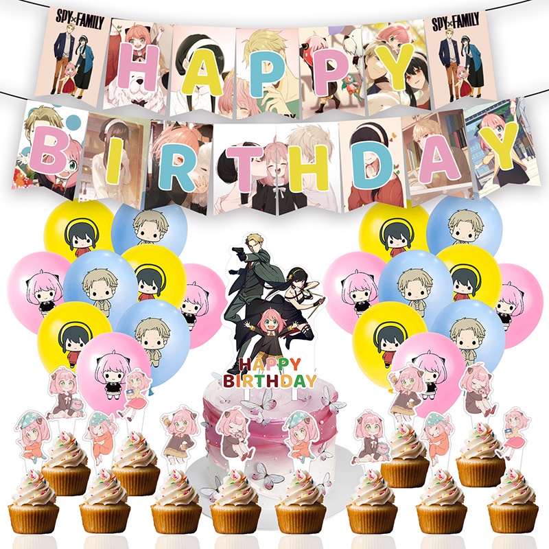 SPY x FAMILY Party Decoration Set Anime Happy Birthday Banner Flag Latex Balloon Anya Loid Yor Cake Topper Kids Partyneeds