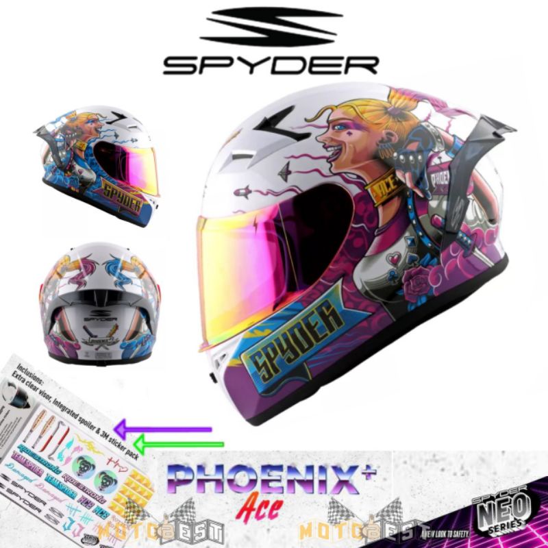 SPYDER Phoenix+ Neo Series Ace (Harley) Fullface Helmet + FREE Extra Clear Visor and Sticker Pack