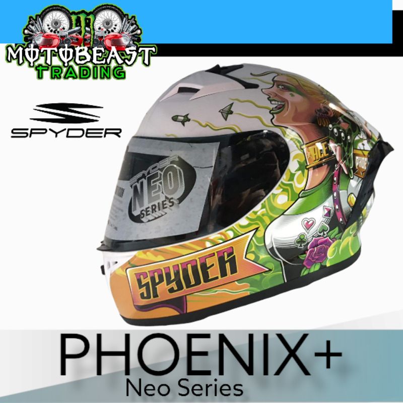 SPYDER Phoenix+ Neo Series Ace (Harley) Fullface Helmet + FREE Extra Clear Visor and Sticker Pack