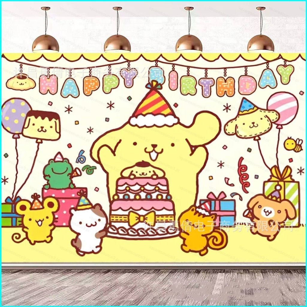 SQ3 Pompompurin Birthday backdrop banner tapestry party decoration photo photography background cloth