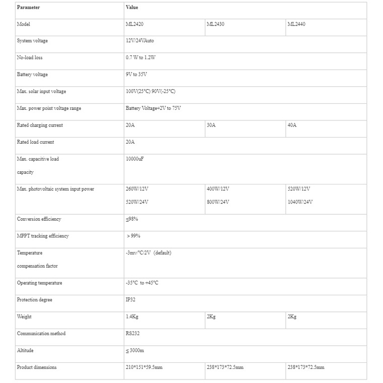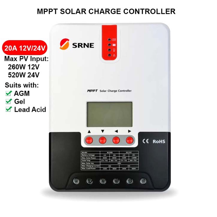 JAFED SRNE 20A/30A/40A MPPT Solar Charge Controller 12V/24V Auto ML Series for Offgrid Solar Power