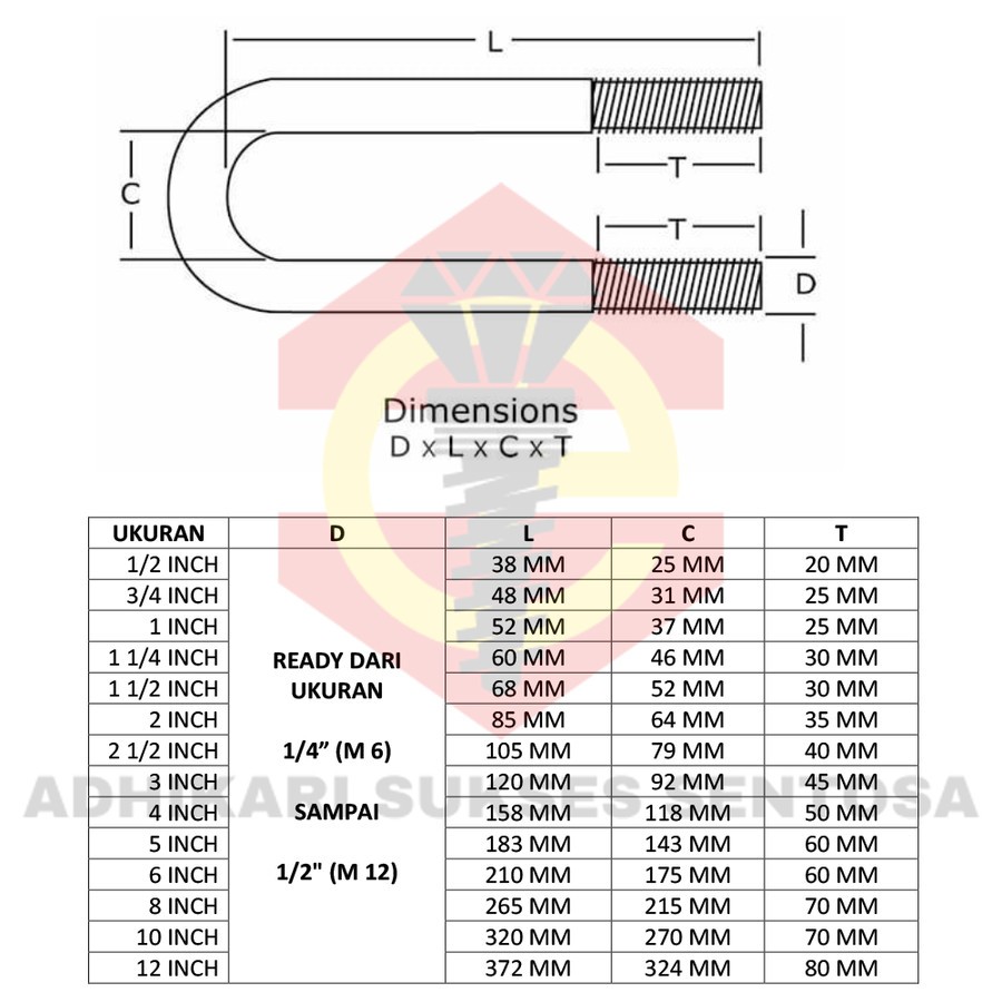 SS 304 M12 U/ 1/ 2x6"Bolt 6 Inch Stainless Steel U Clamp/