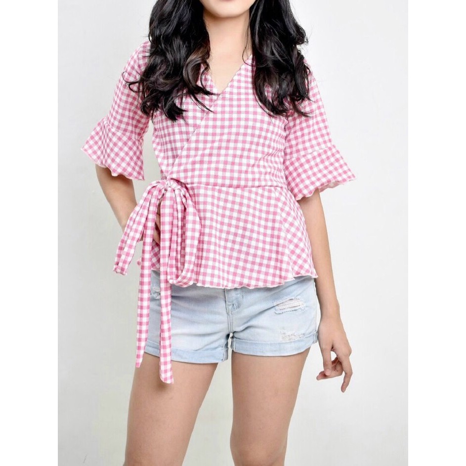 SS Korean Overlap Top Ruffle Tops Women Fashion Top Wrap Around