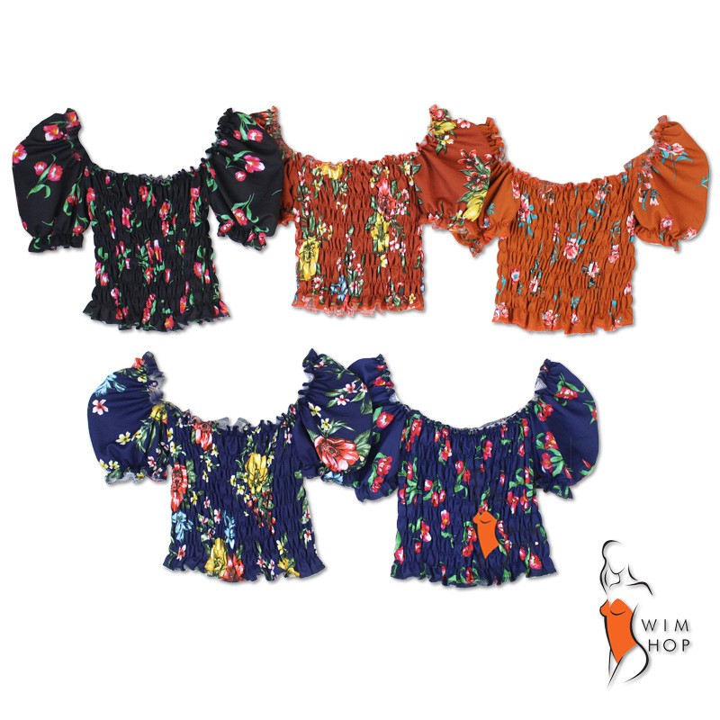 SS Puff Shoulder Smocking Top Off Shoulder Tops Smocked Crop Top