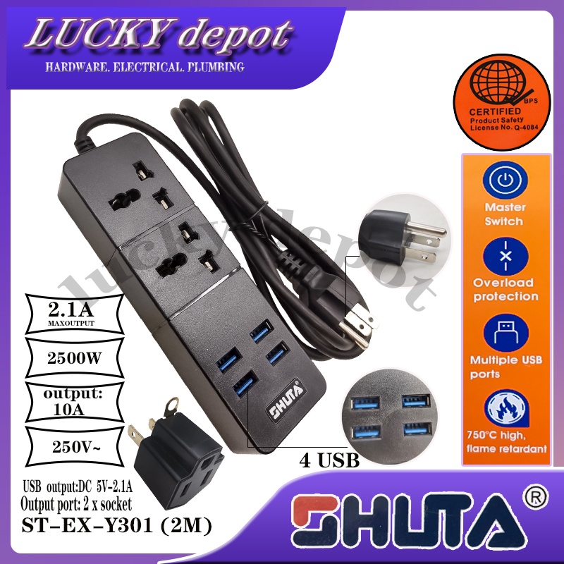 ST-EX-Y301 2M SOCKET EXTENSION OUTLET 4 USB PORTS, EXTENSION CORD 2 SOCKET ( SHUTA )