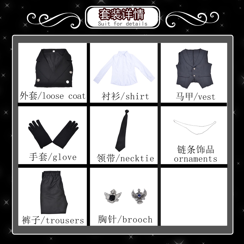 ST1 Black Butler Sebastian Michaelis Cosplay Coat Shirt Vest Trousers Costume Set Anime Uniform Halloween
