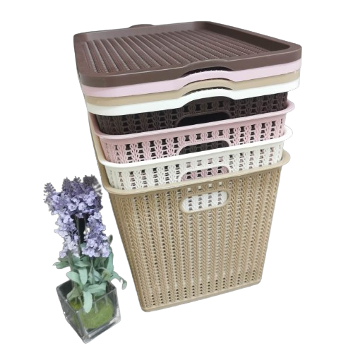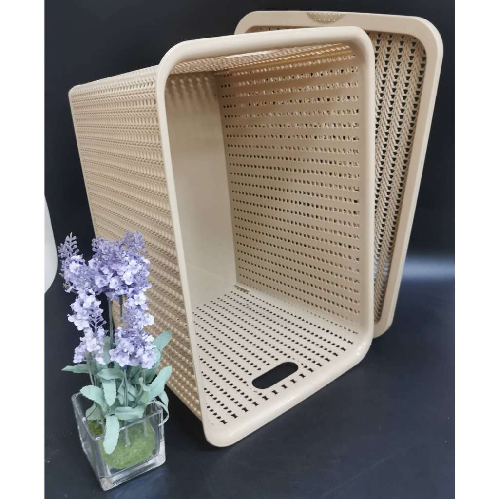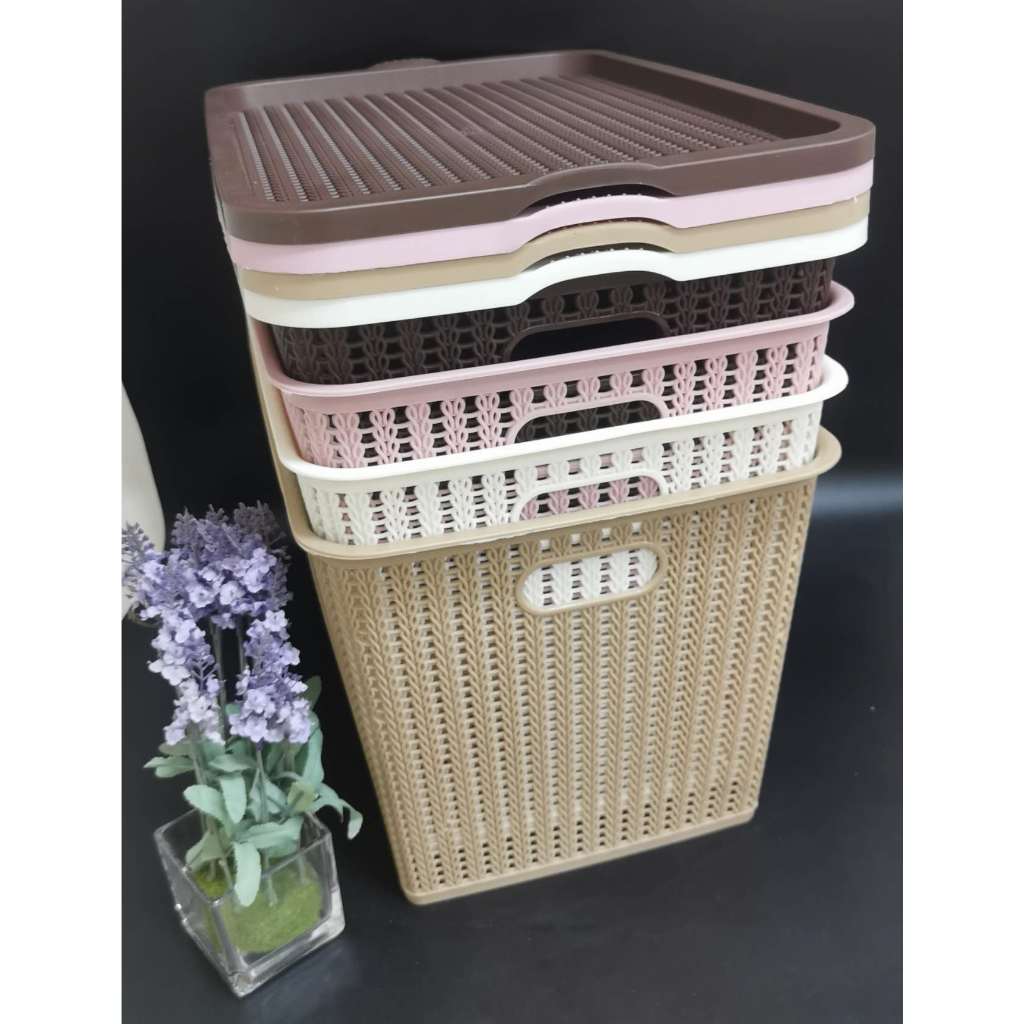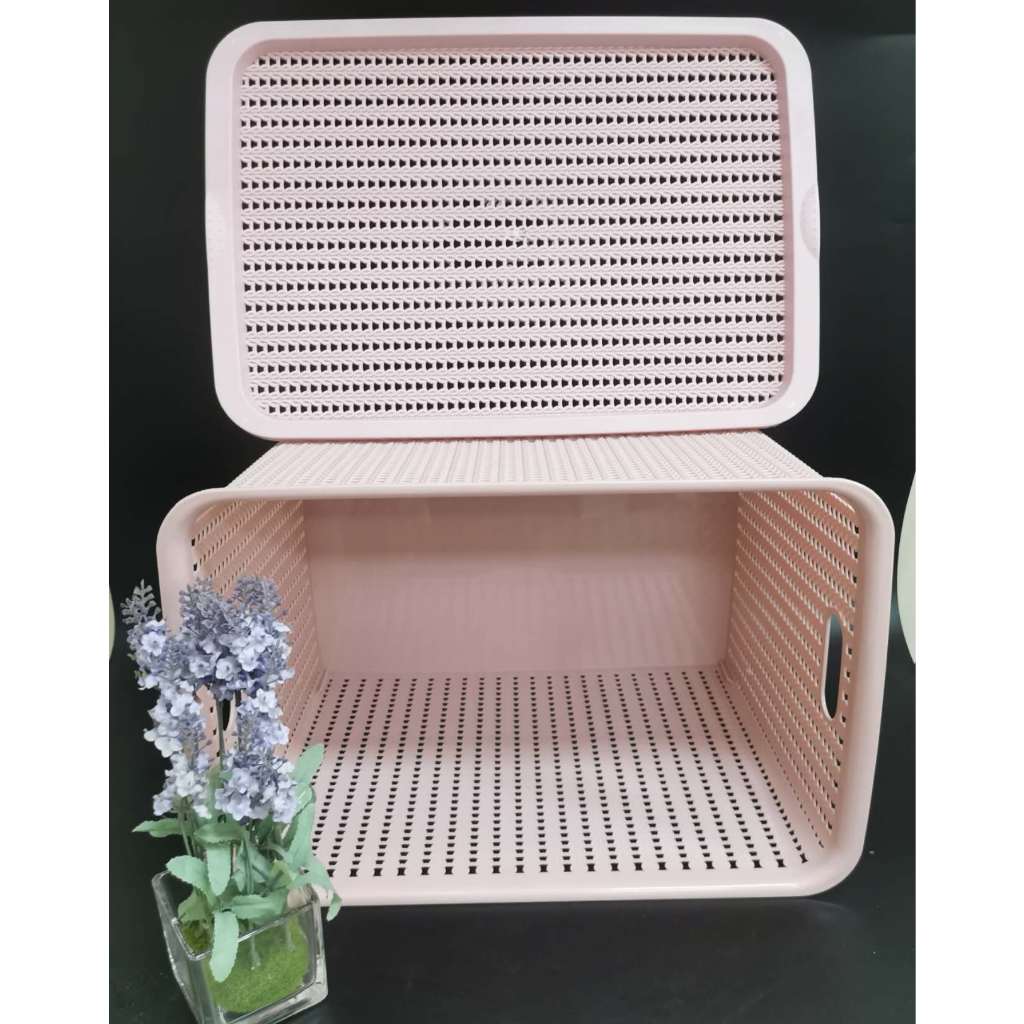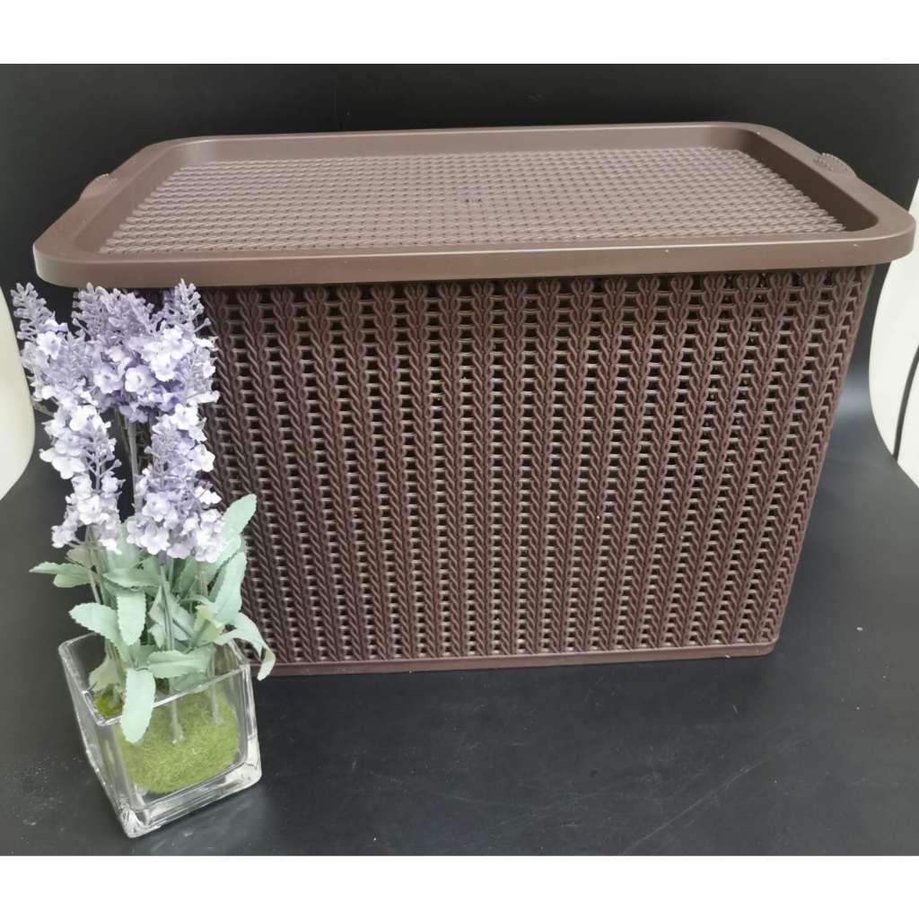 STACKABLE PLASTIC RATTAN DESIGN STORAGE BOX WITH LID