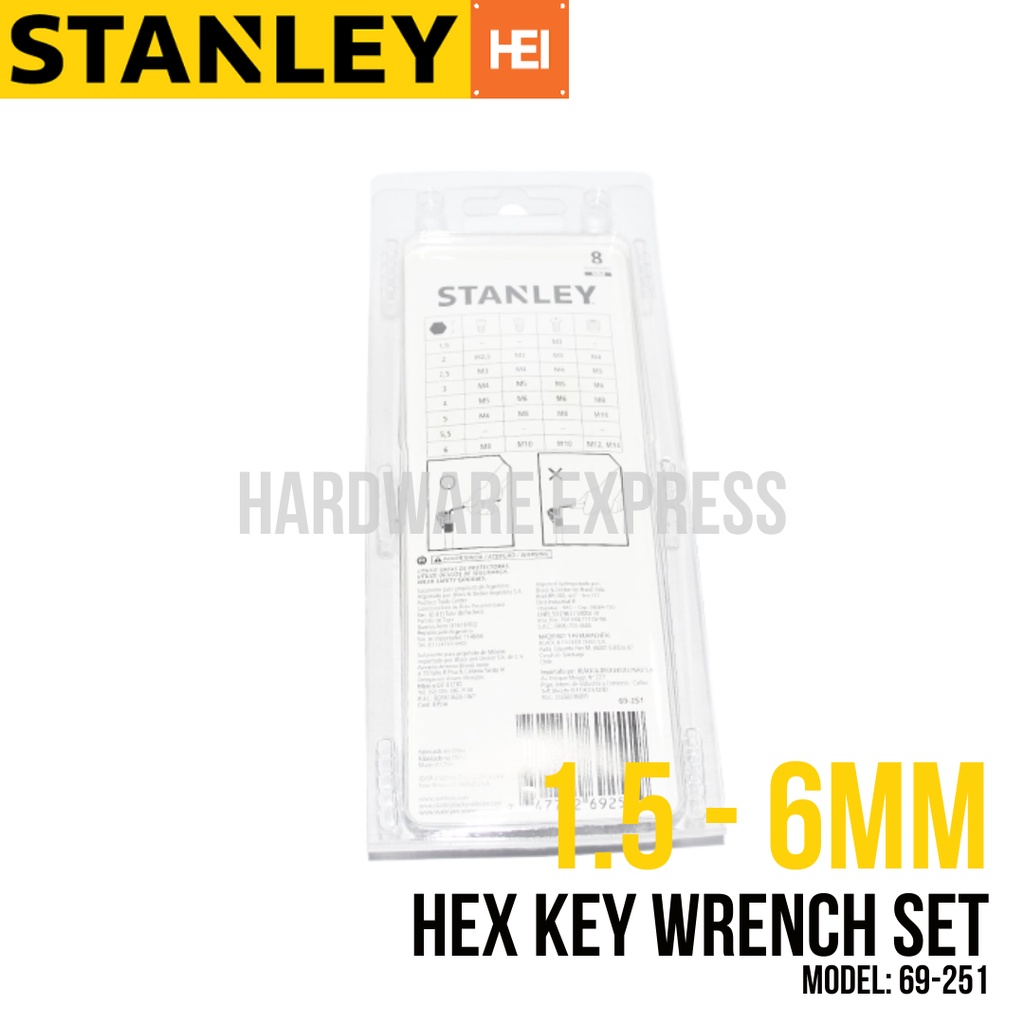 STANLEY 8pc Hex Key Set 1.5 to 6mm (69-251) Allen Wrench Set
