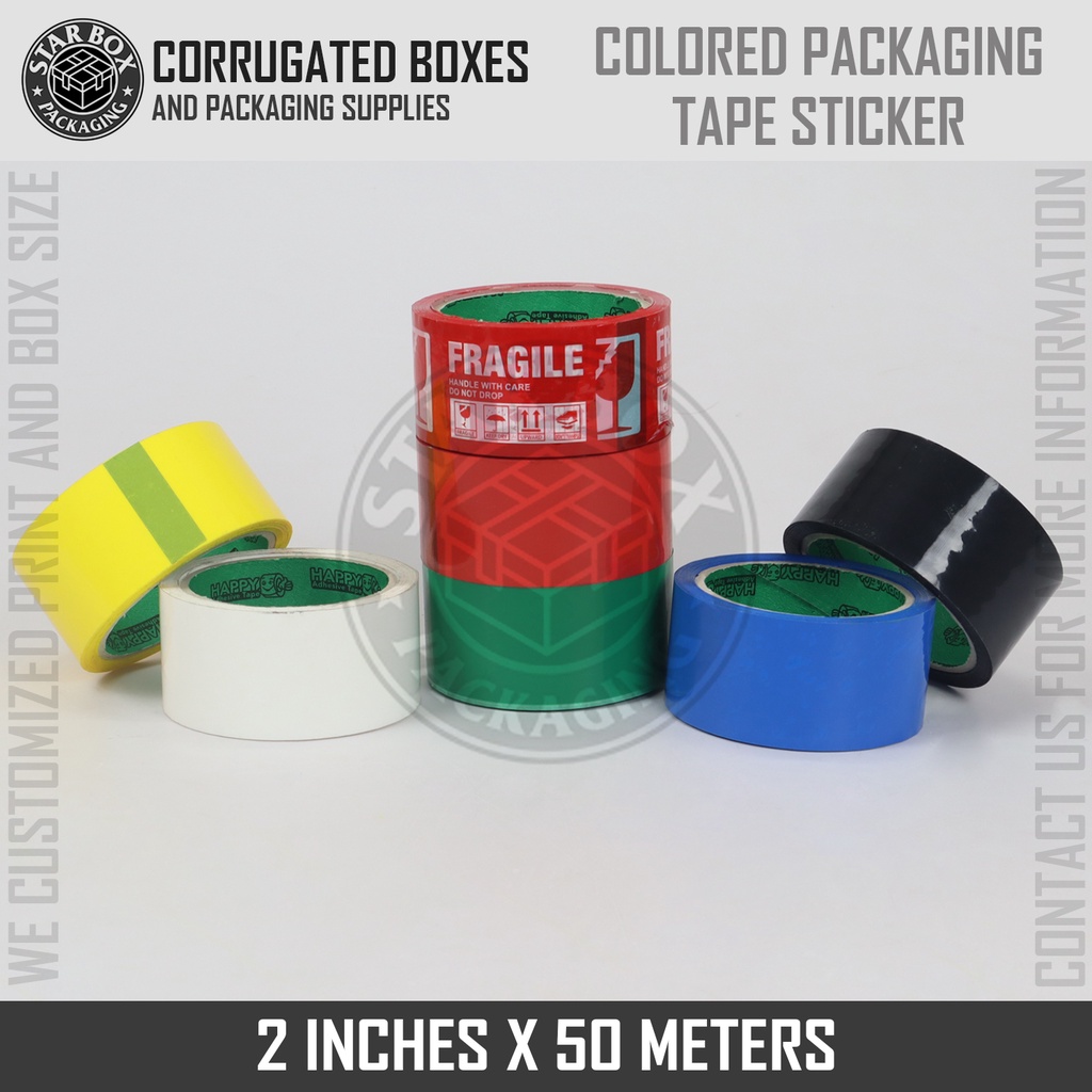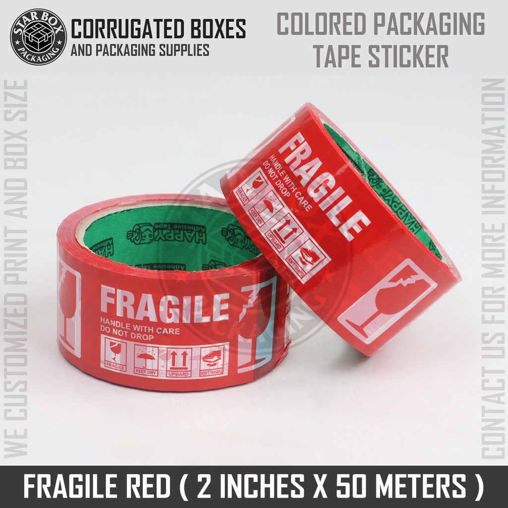 STARBox Fragile Stickers Tapes Label And Colored Packaging Tape 2 inches X 50 Meters (PER PIECES)