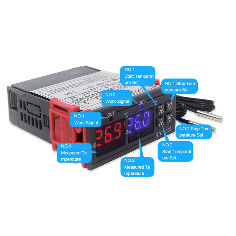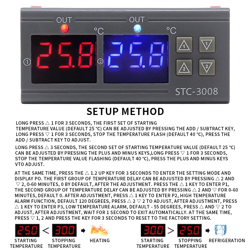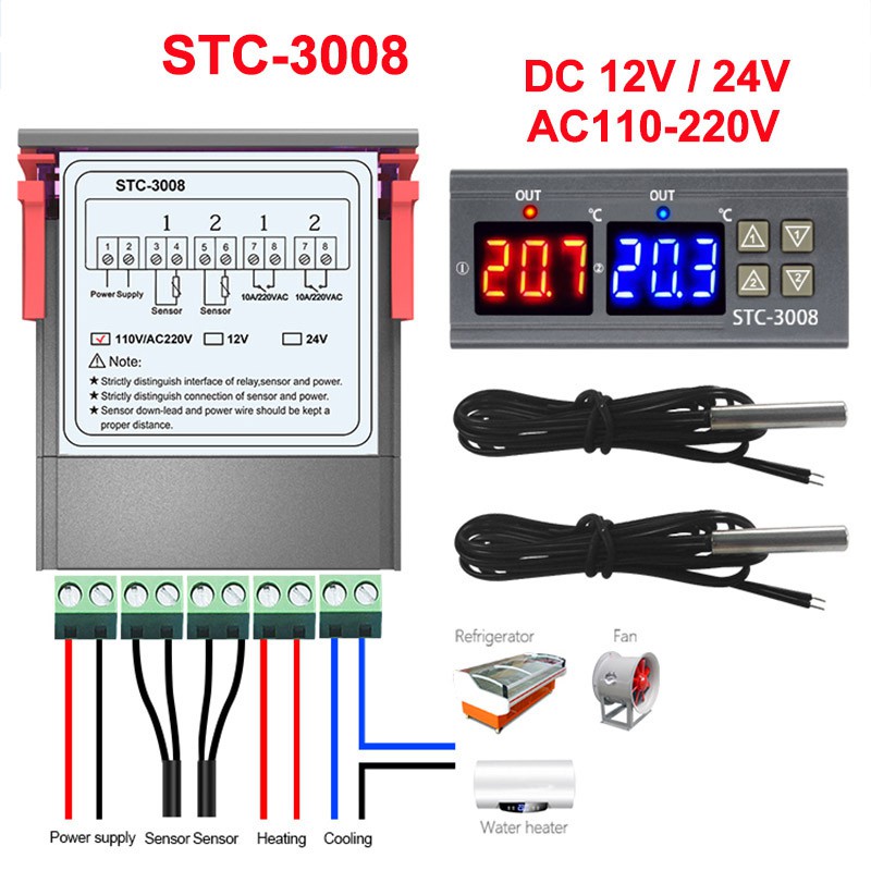 STC-3008 Dual Digital Temperature Controller Two Relay Output 12V 24V 110-220V Thermoregulator Thermostat with Heater Cooler