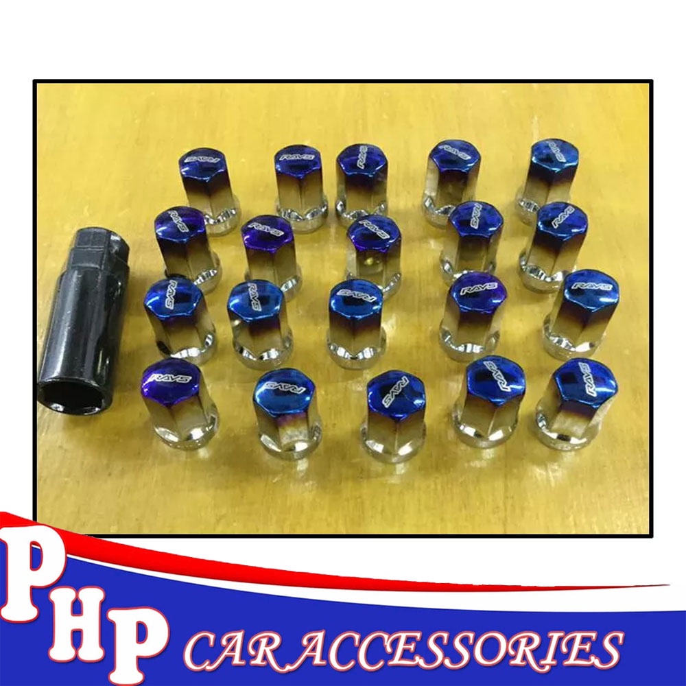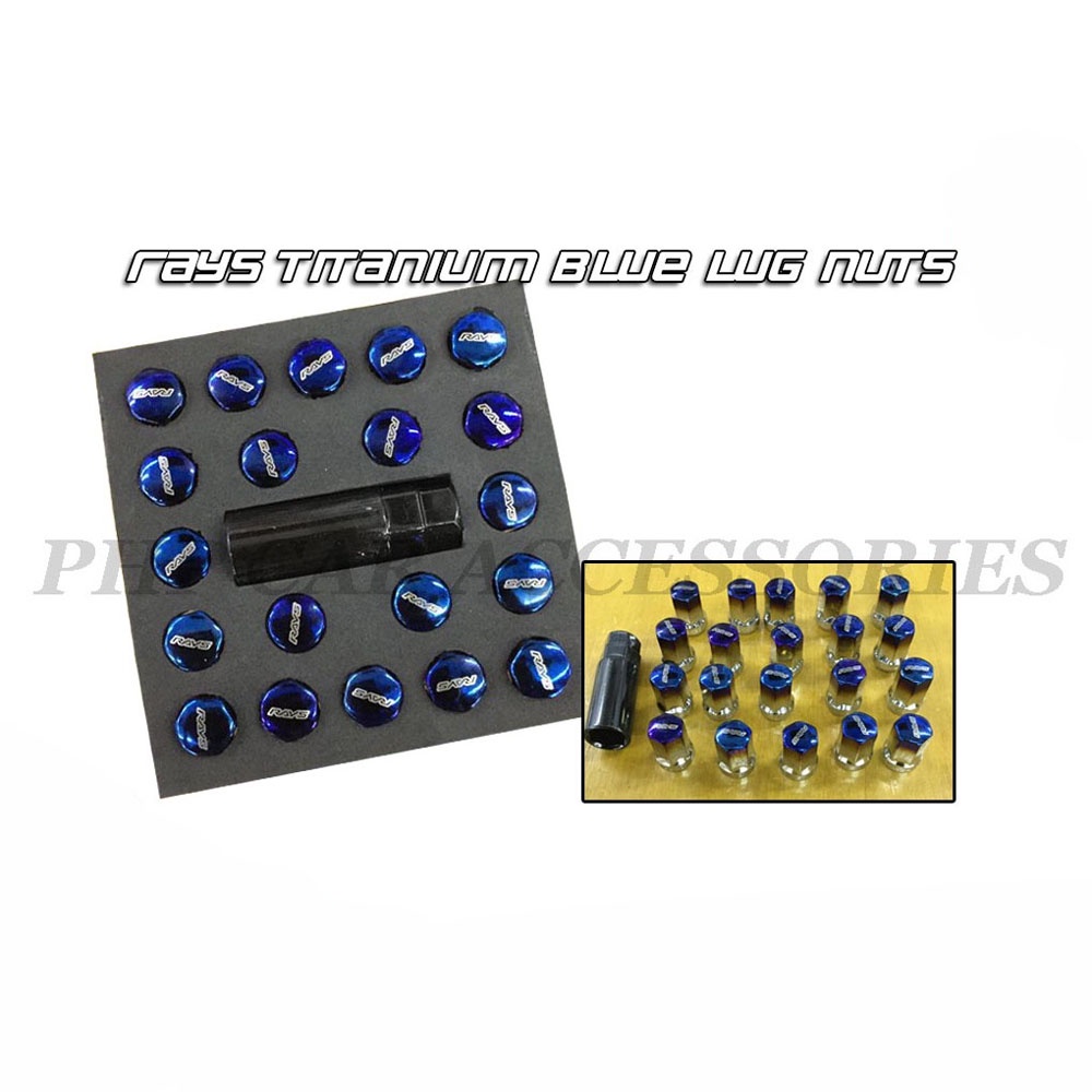 STEEL Titanium Blue Lug Nuts M12X1.5 32mm Extended Universal Car Racing Wheel Nuts (black box)